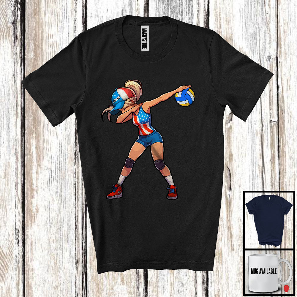 new MacnyStore - Personalized Custom Name Dabbing Women Playing Volleyball, Proud 4th Of July Sport, Patriotic T-Shirt – Macnystore