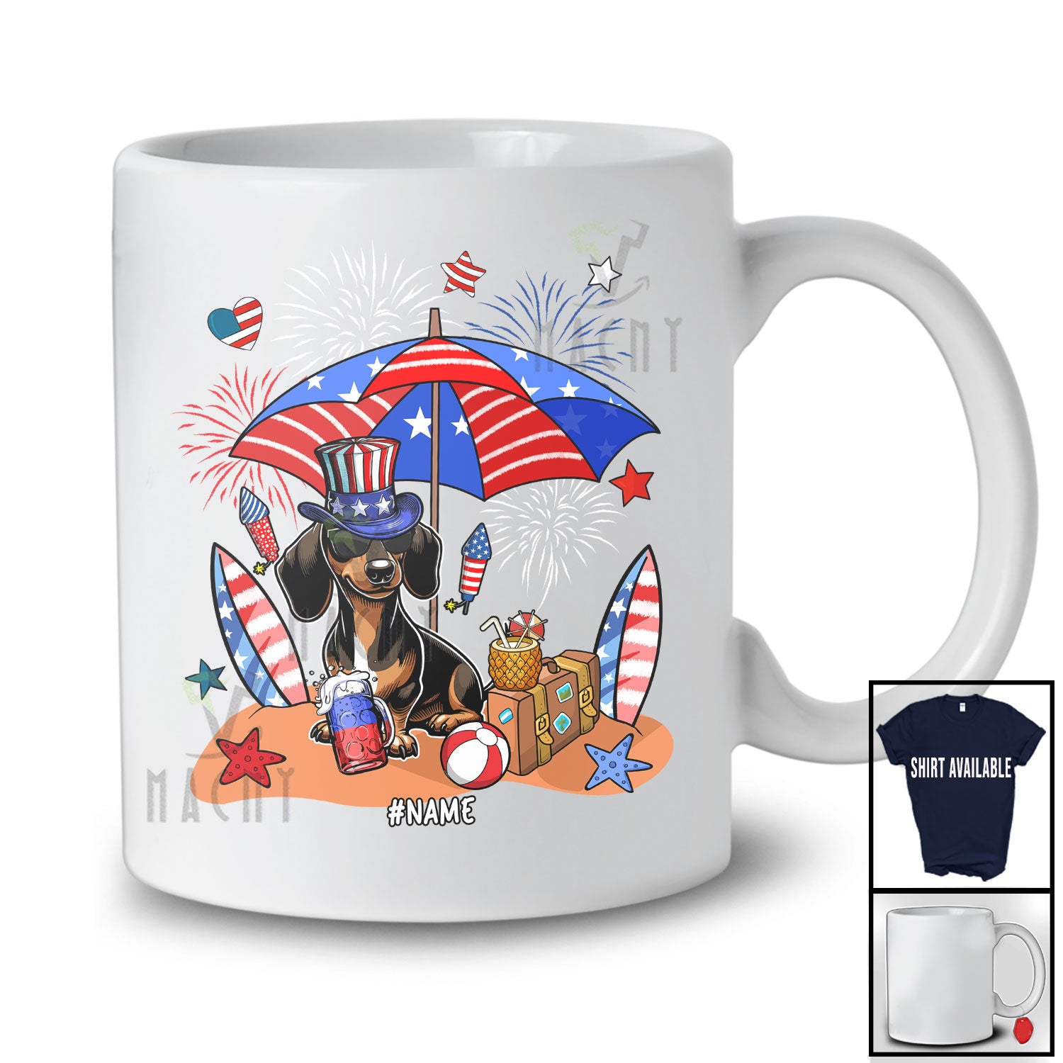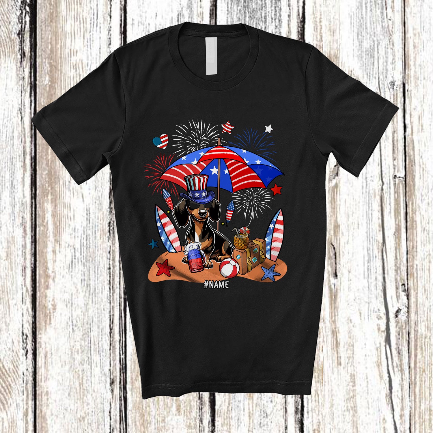 • Personalized Custom Name Dachshund Relax Wait For 4th of July; Lovely US Flag Patriotic T-Shirt. This cotton t-shirt is a durable staple product with a classic fit. One of the most popular items, it has a relaxed style made for everyday and casual wear.