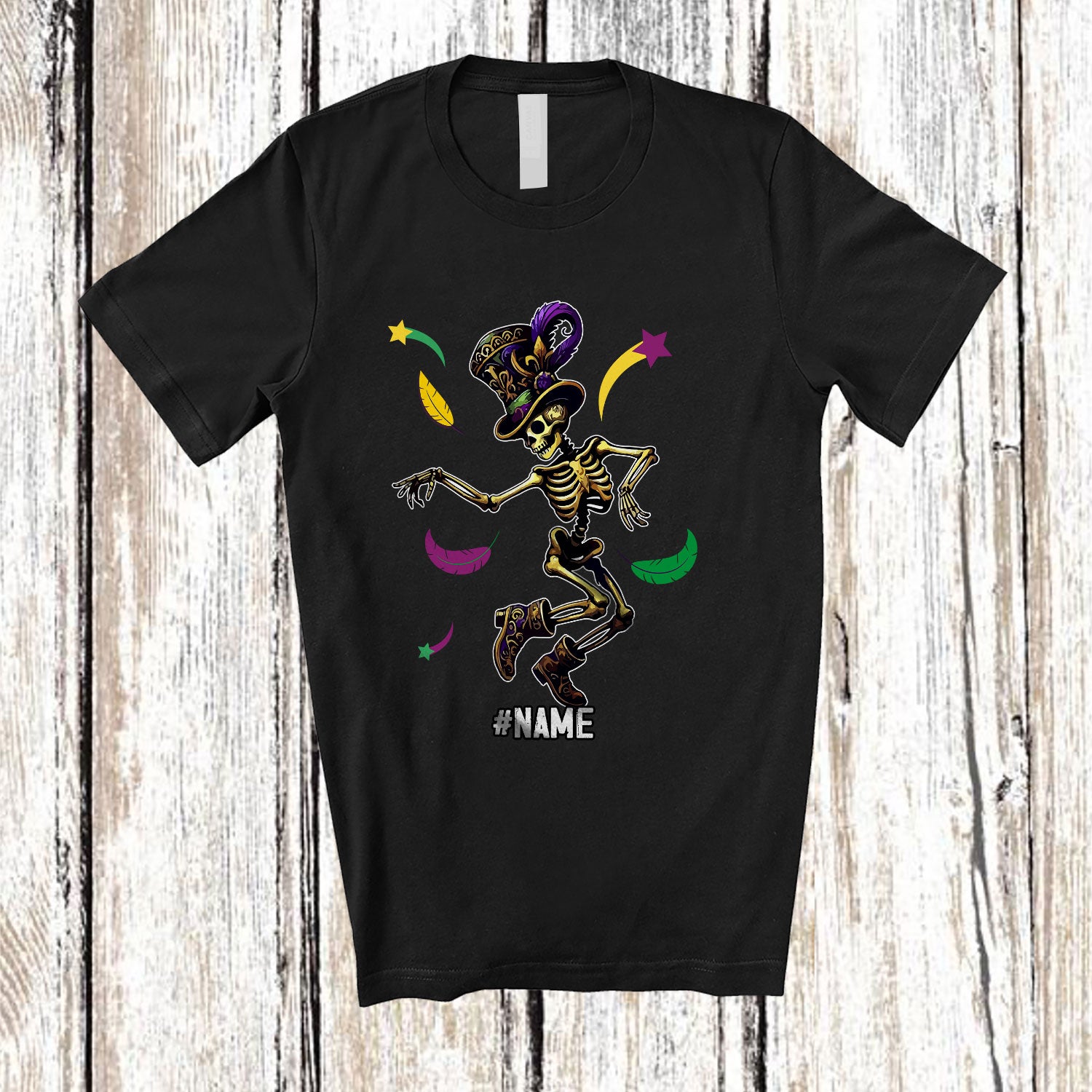 Personalized Custom Name Dancing Mardi Gras Skeleton; Joyful Mardi Gras Skeleton Parades T-Shirt