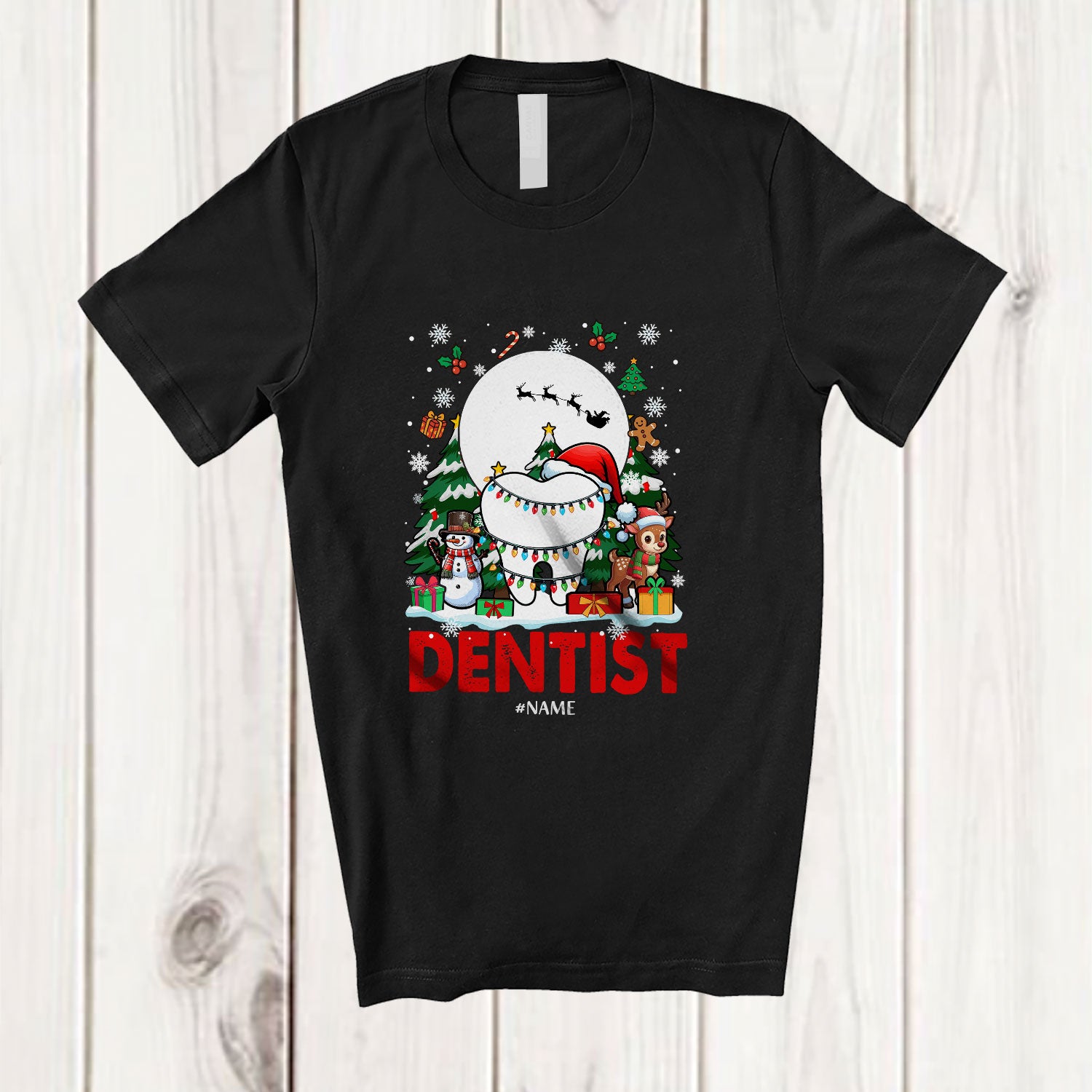 Personalized Custom Name Dentist; Joyful Christmas Reindeer Snowman; Proud Jobs Family T-Shirt