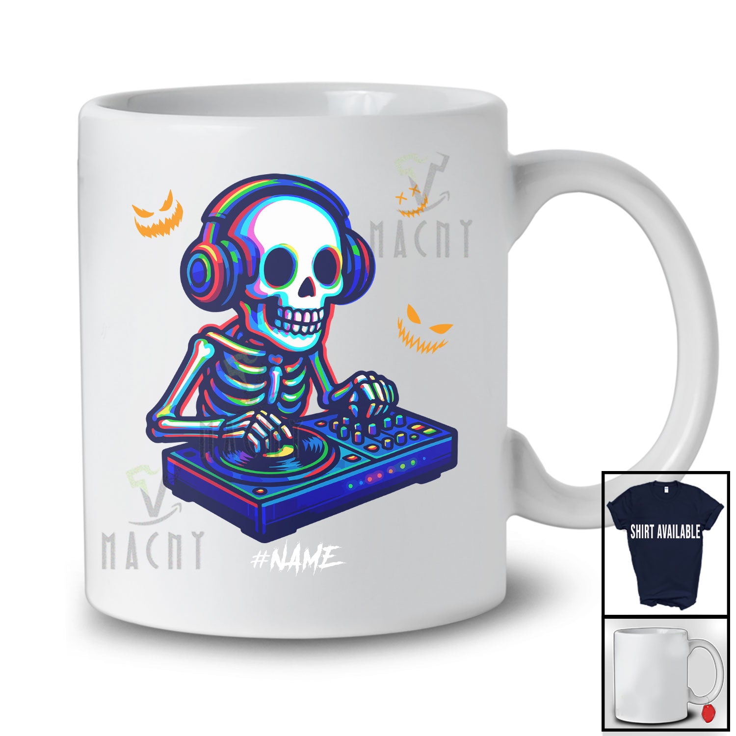 Personalized Custom Name DJ Skeleton Playing EDM; Amusing Halloween Skeleton; Dancing Dancer T-Shirt. This cotton t-shirt is a durable staple product with a classic fit. One of the most popular items, it has a relaxed style made for everyday and casual wear.