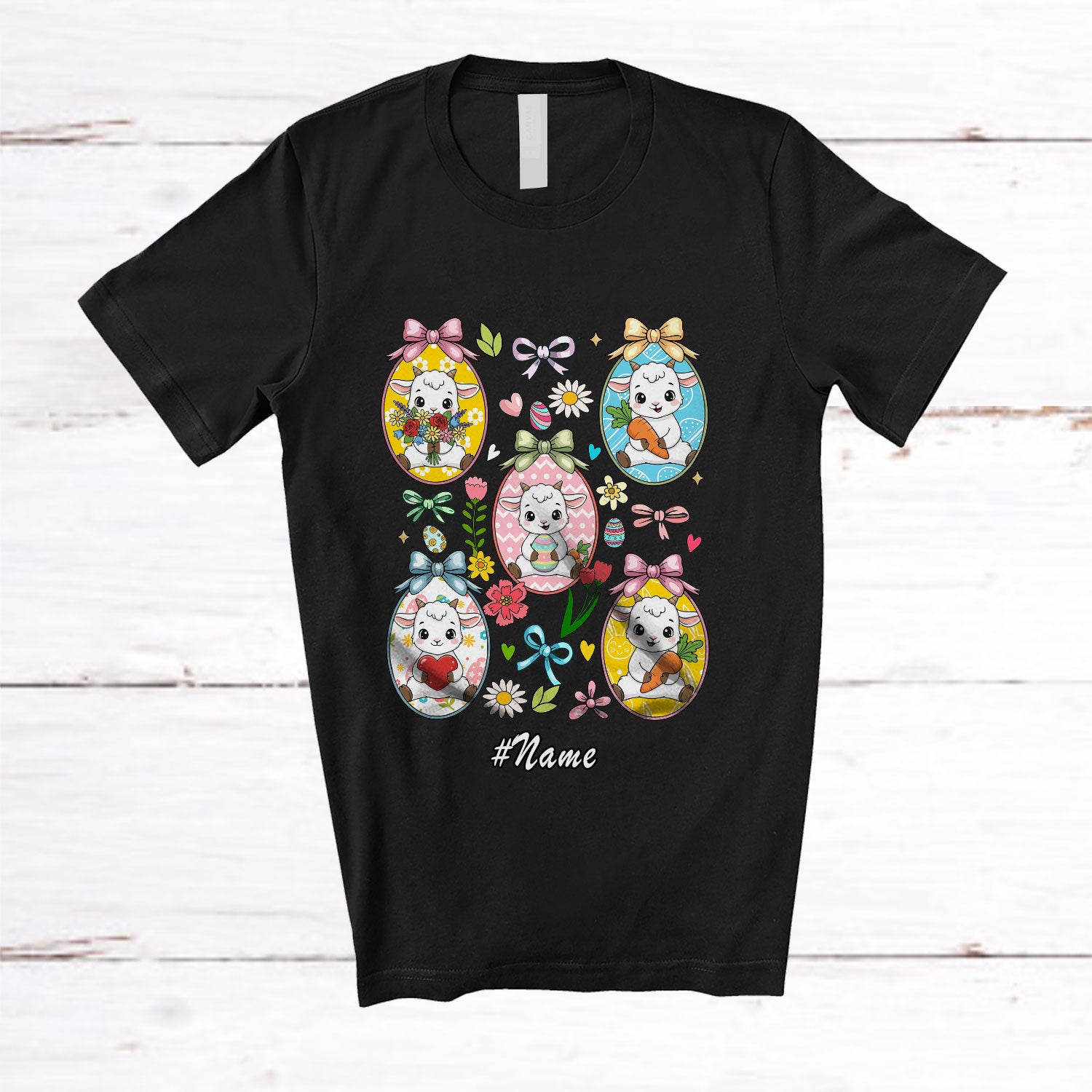 The Personalized Custom Name Easter Eggs Sheep Collection; Lovely Flowers Eggs Hunting; Farmer T-Shirt is the yin, to your yang. You've found what you're looking for.