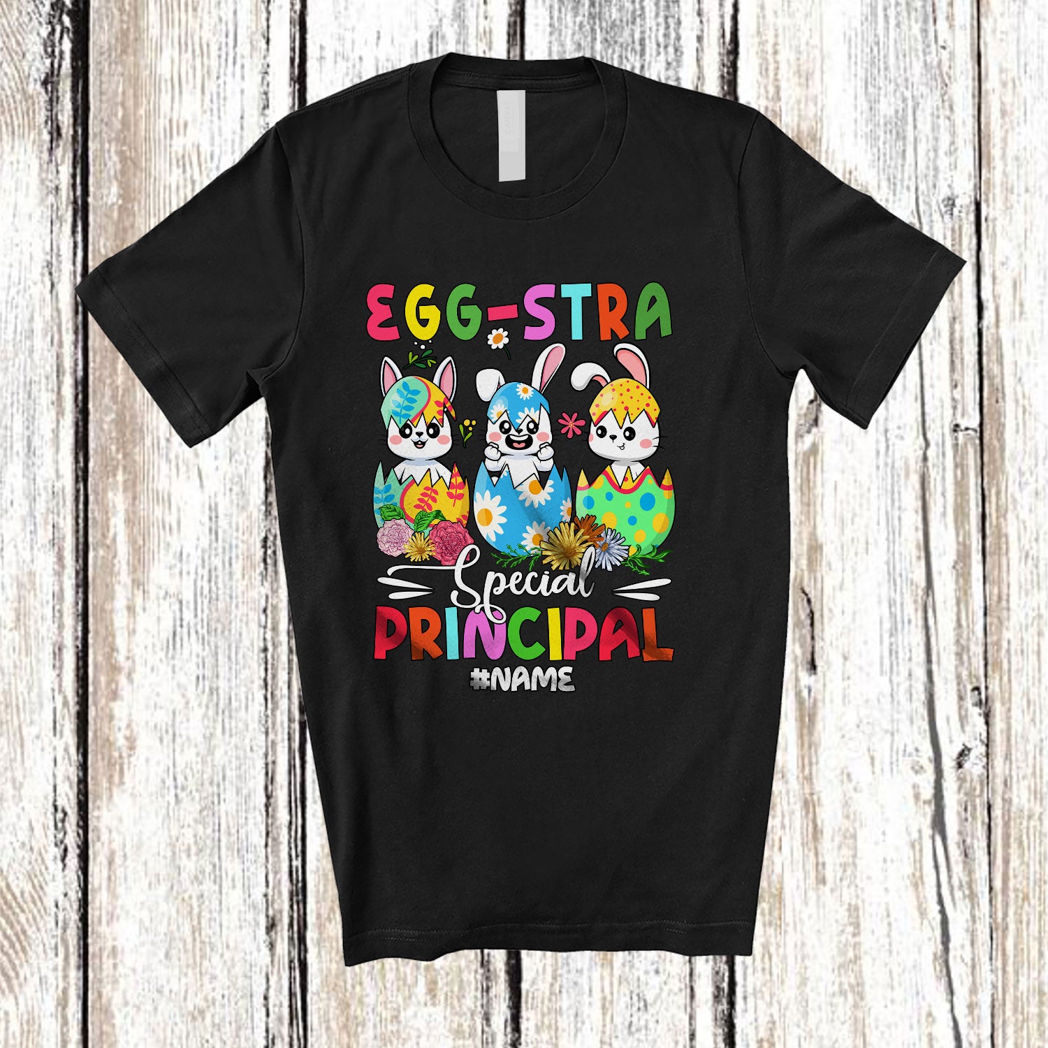 Personalized Custom Name Egg-Stra Special Principal; Amazing Easter Extra Three Bunnies In Eggs T-Shirt