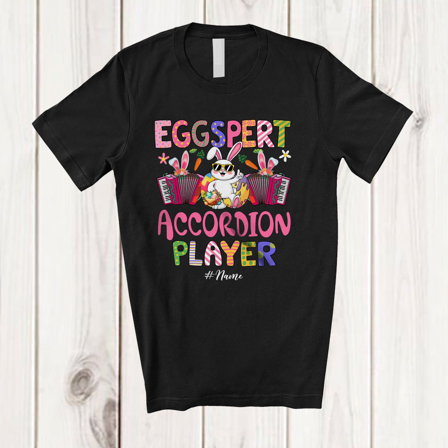 Personalized Custom Name Eggspert Accordion Player; Joyful Easter Egg Expert; Musical Instrument T-Shirt