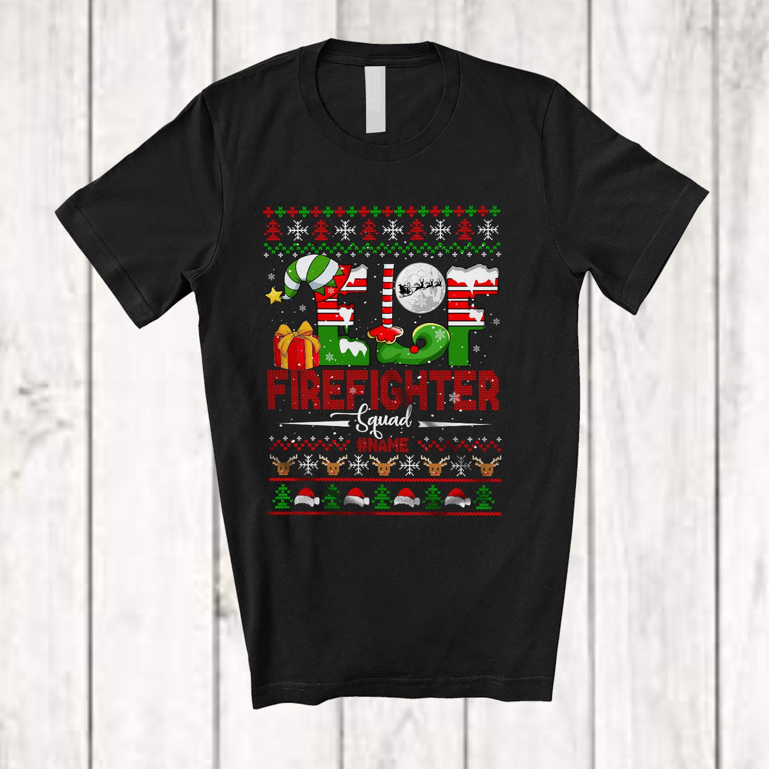 Personalized Custom Name Elf Firefighter Squad; Fantastic Christmas Sweater Elf; Jobs Careers T-Shirt