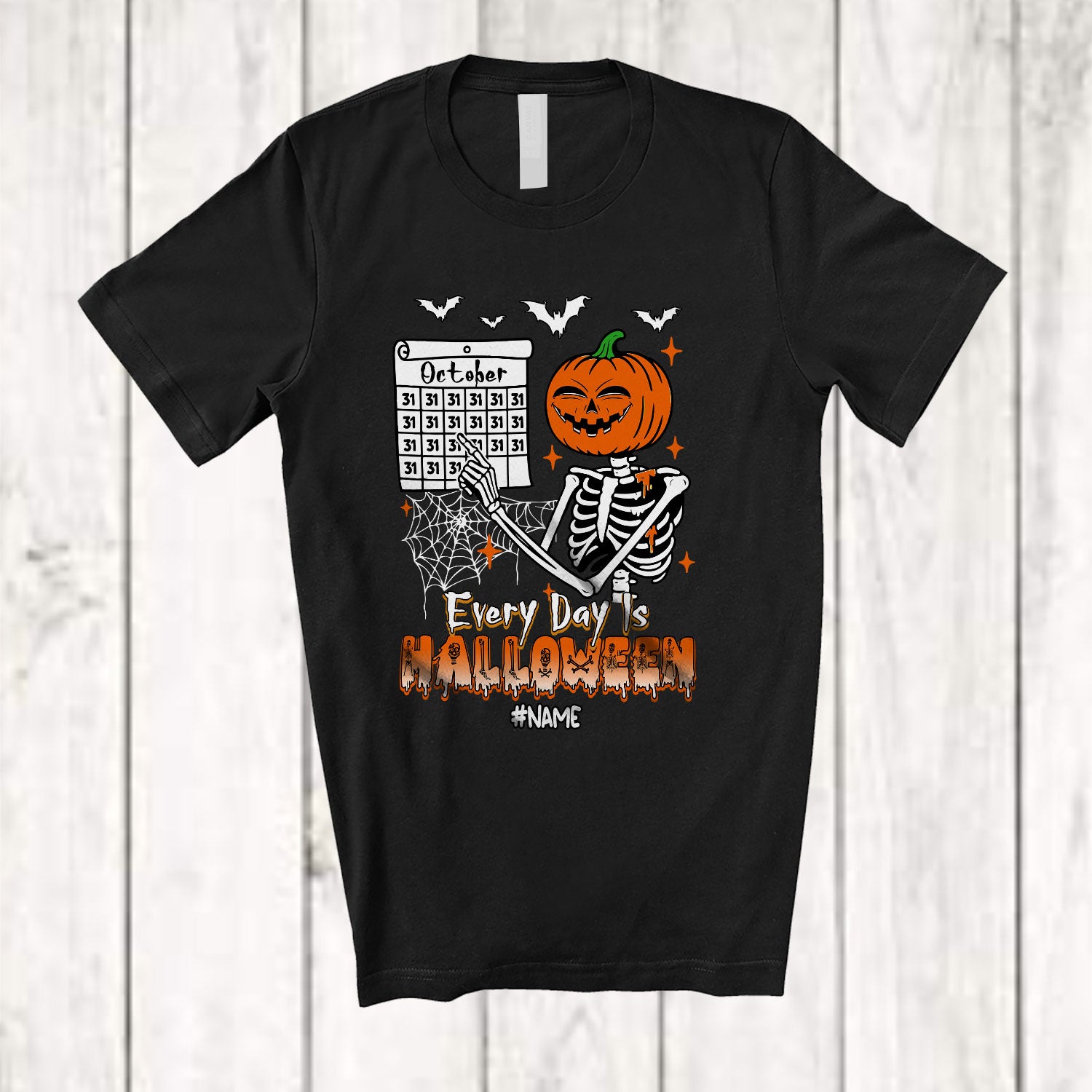 Personalized Custom Name Everyday Is Halloween; Humorous Pumpkin Skeleton Counting T-Shirt