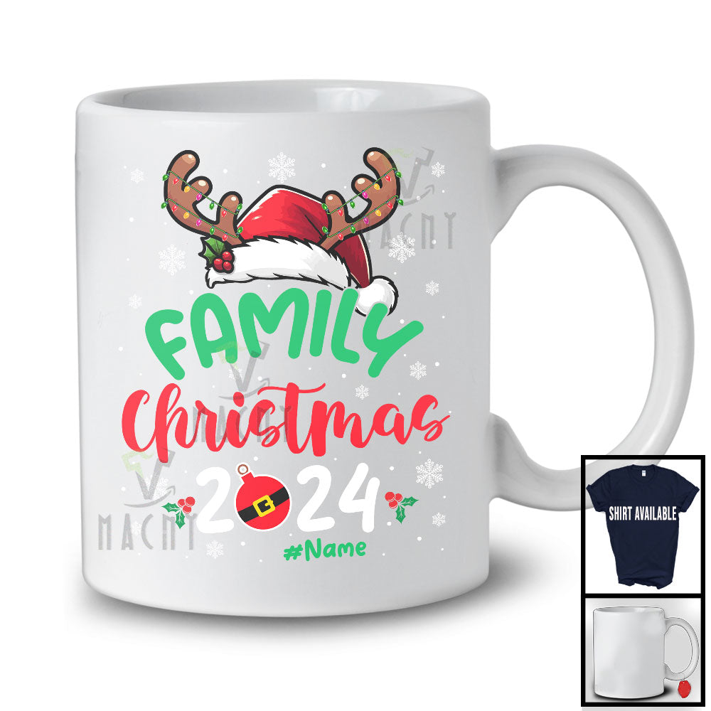 Personalized Custom Name Family Christmas 2024; Lovely Santa Reindeer Snow; Family Group T-Shirt