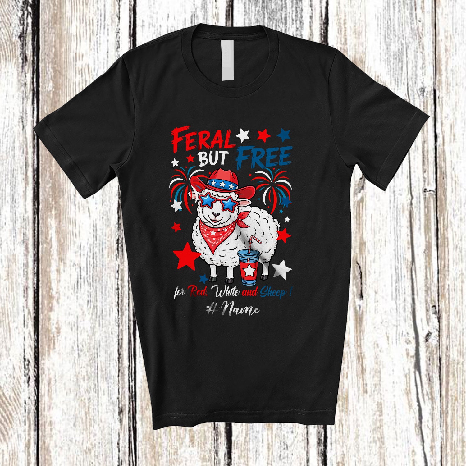 Personalized Custom Name Feral But Free; Awesome 4th Of July American Flag Sheep Farmer T-Shirt