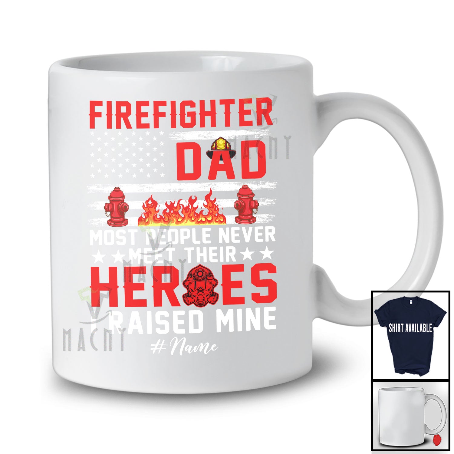 Personalized Custom Name Firefighter Dad I Raised Mine; Proud Father's Day US Flag; Family T-Shirt. This cotton t-shirt is a durable staple product with a classic fit. One of the most popular items, it has a relaxed style made for everyday and casual wear.