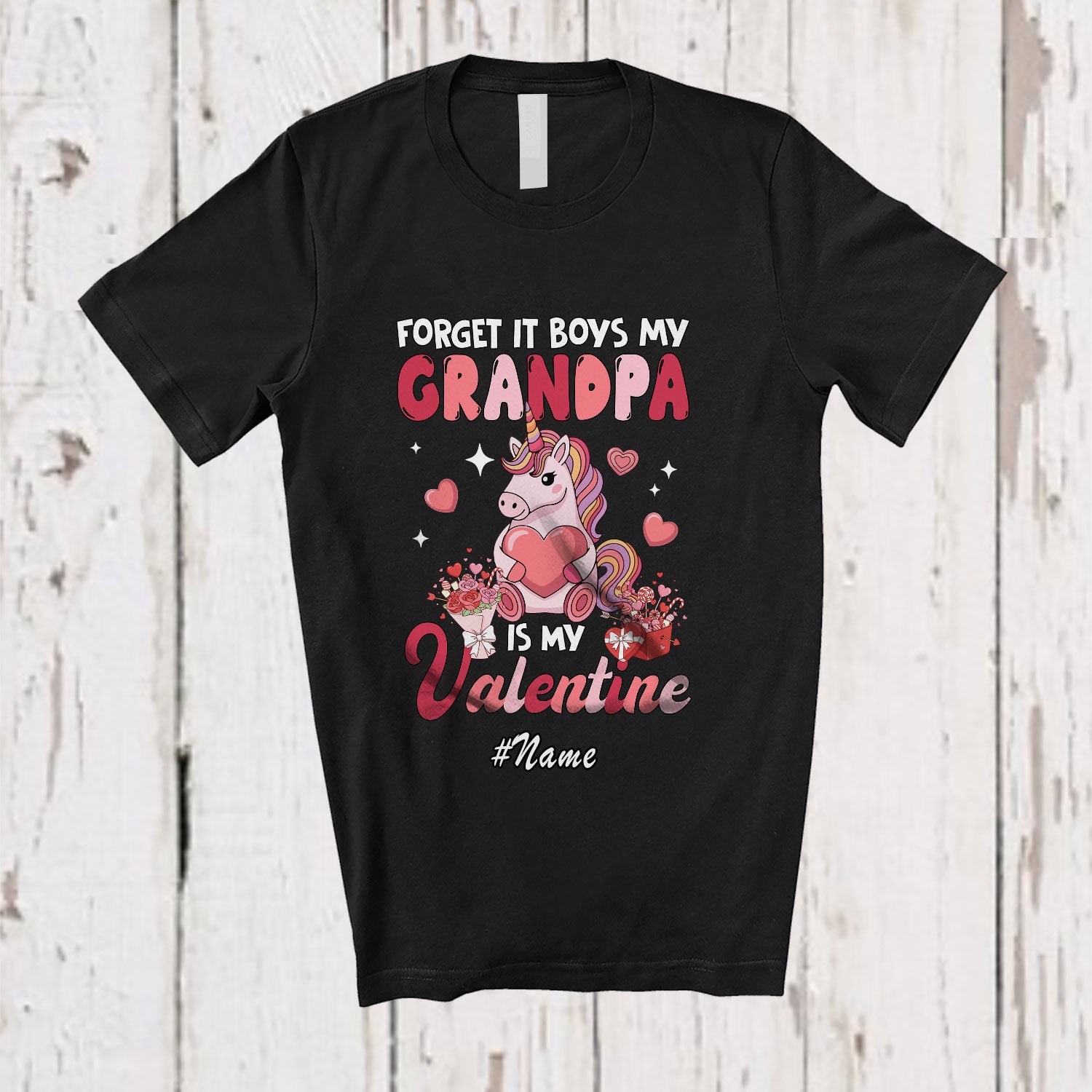 Personalized Custom Name Forget It My Grandpa Is My Valentine; Lovely Unicorn Hearts; Girls Family T-Shirt