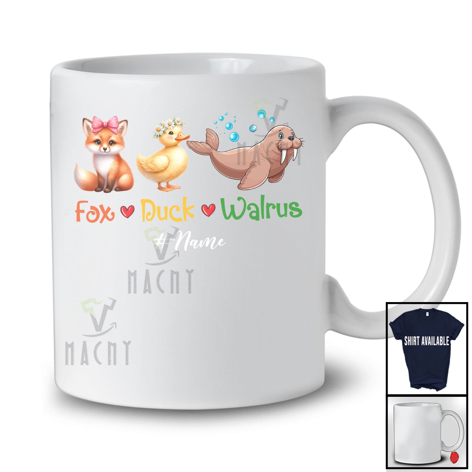 The Personalized Custom Name Fox Duck Walrus; Adorable Wild Animal Farm Farmer Walrus Lover T-Shirt destined to impress, and priced at only $12.95, for a limited time.