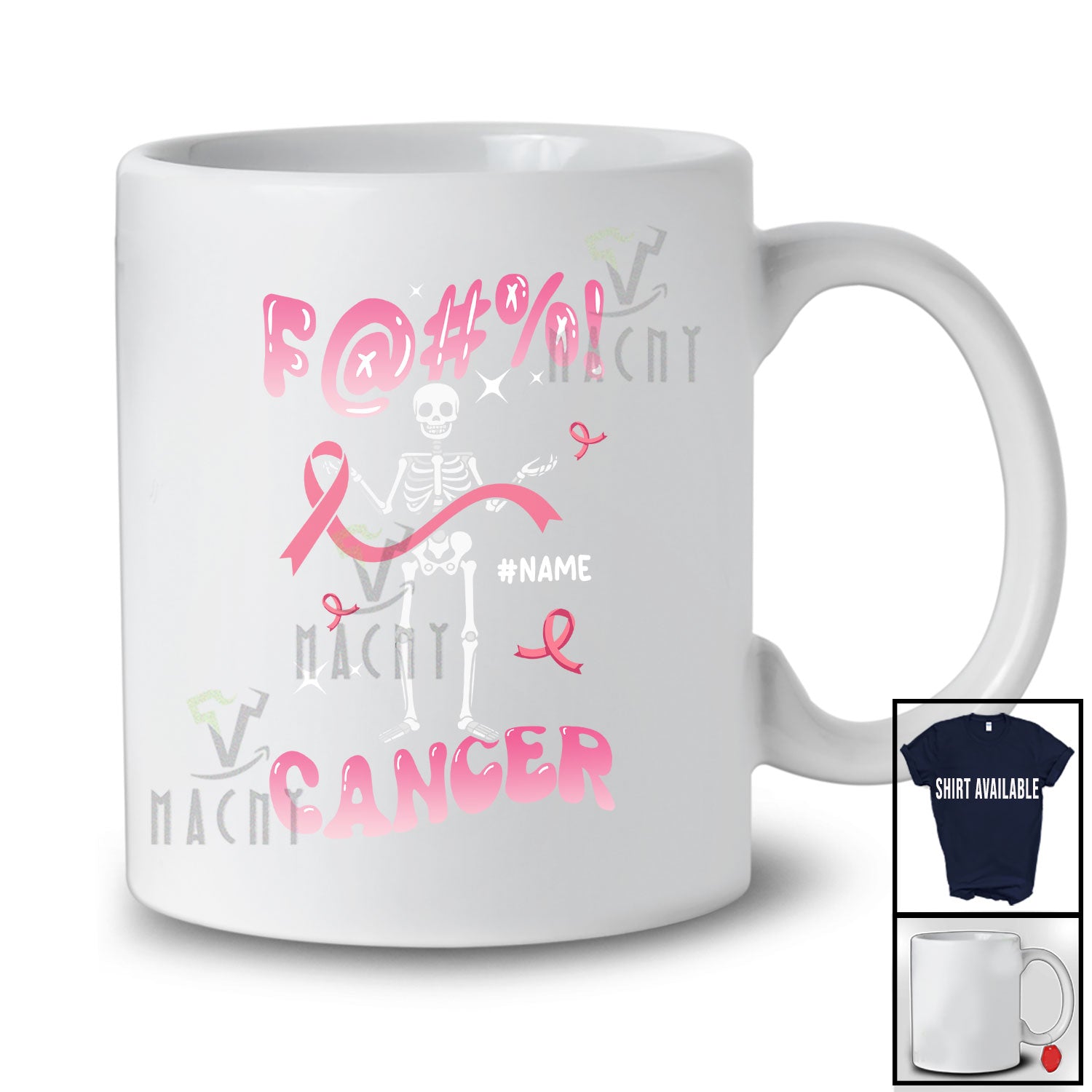 Personalized Custom Name Fuck Cancer; Sarcastic Breast Cancer Awareness Pink Skeleton T-Shirt. This cotton t-shirt is a durable staple product with a classic fit. One of the most popular items, it has a relaxed style made for everyday and casual wear.