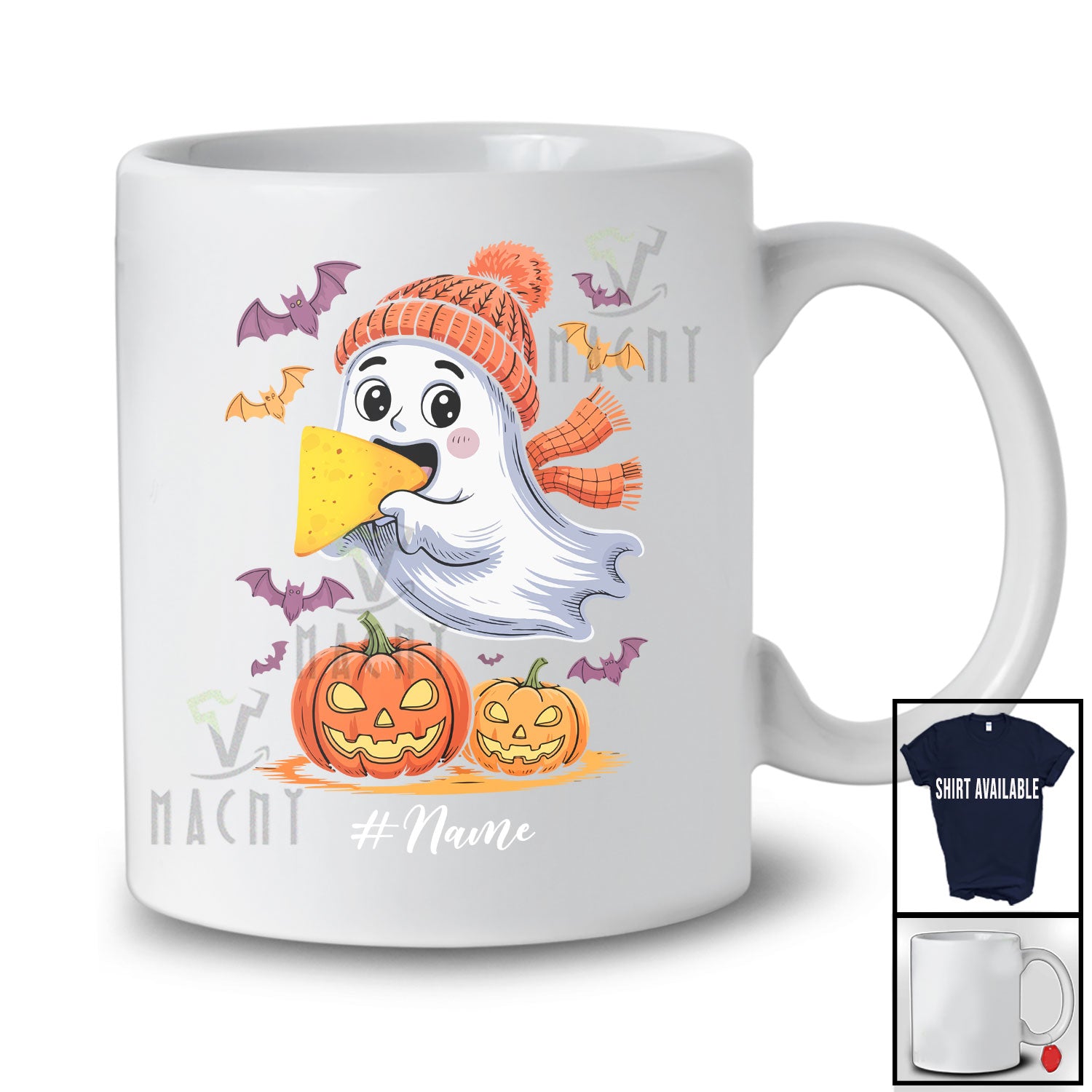 Personalized Custom Name Ghost Boo Eating Nacho; Joyful Halloween Costume Food Lover; Family T-Shirt. This cotton t-shirt is a durable staple product with a classic fit. One of the most popular items, it has a relaxed style made for everyday and casual wear.