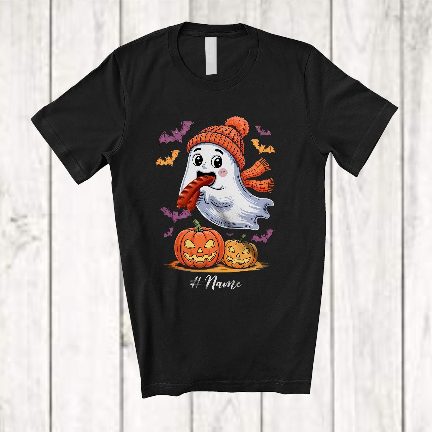 Personalized Custom Name Ghost Boo Eating Sausage; Joyful Halloween Costume Food Lover; Family T-Shirt