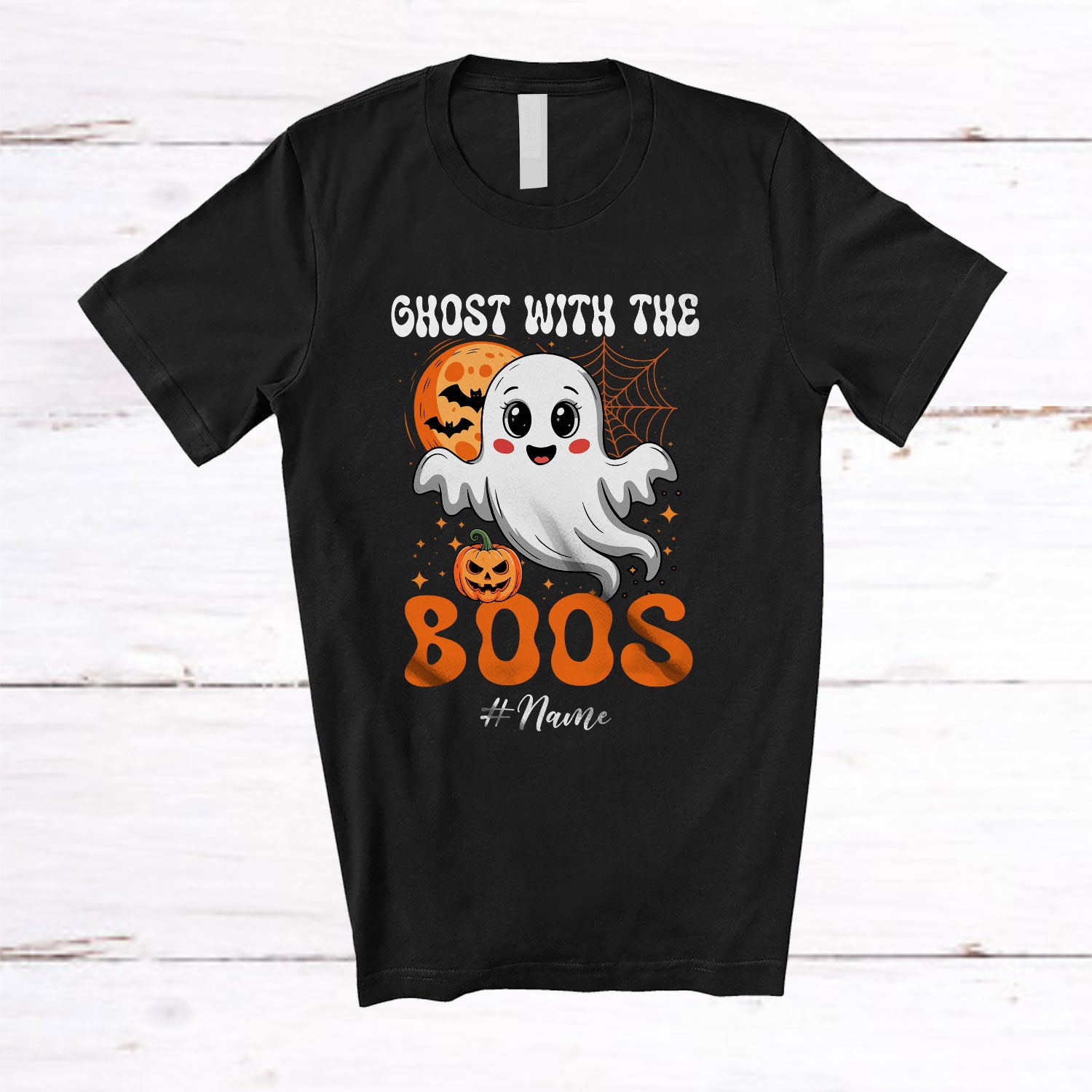 Personalized Custom Name Ghost With The Boos; Lovely Halloween Moon Costume Family T-Shirt. This cotton t-shirt is a durable staple product with a classic fit. One of the most popular items, it has a relaxed style made for everyday and casual wear.