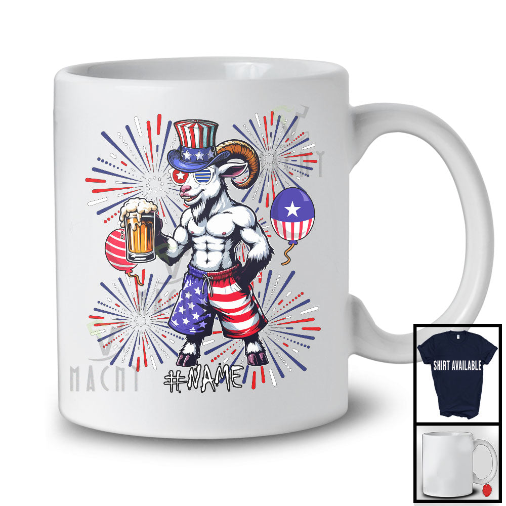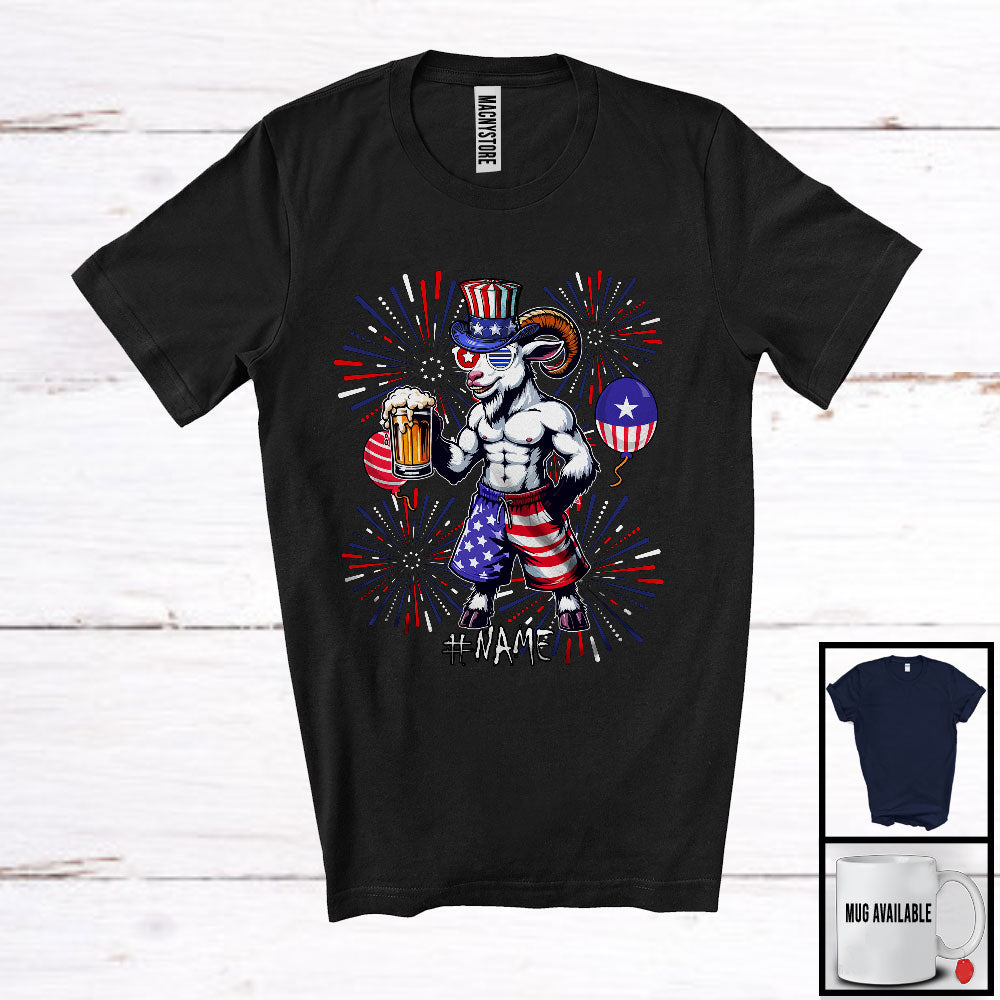 Personalized Custom Name Goat Drinking Beer, Lovely 4th Of July Fireworks, Farmer Patriotic T-Shirt