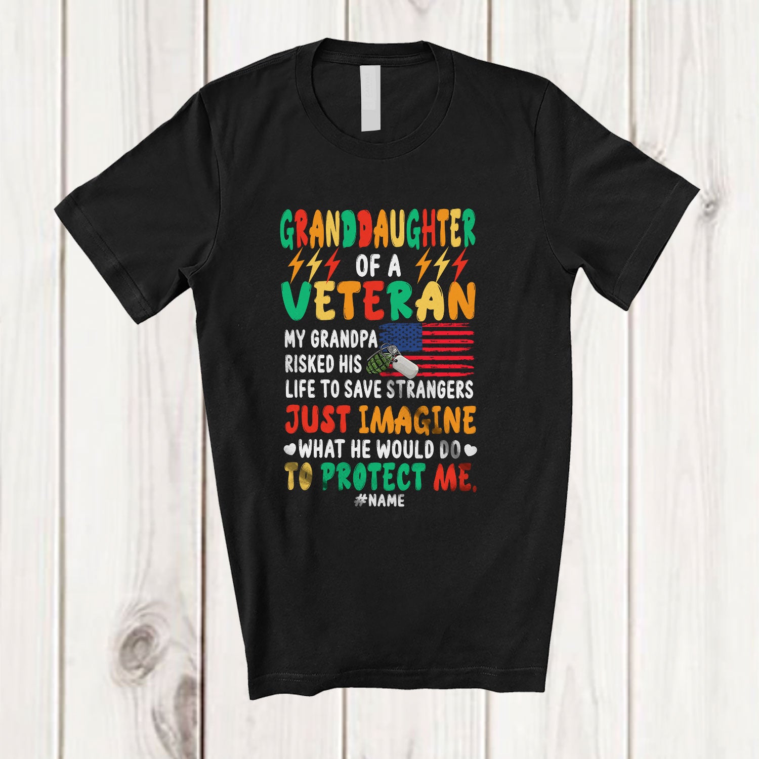 Personalized Custom Name Granddaughter Of A Veteran; Proud Father's Day Grandpa Protector T-Shirt