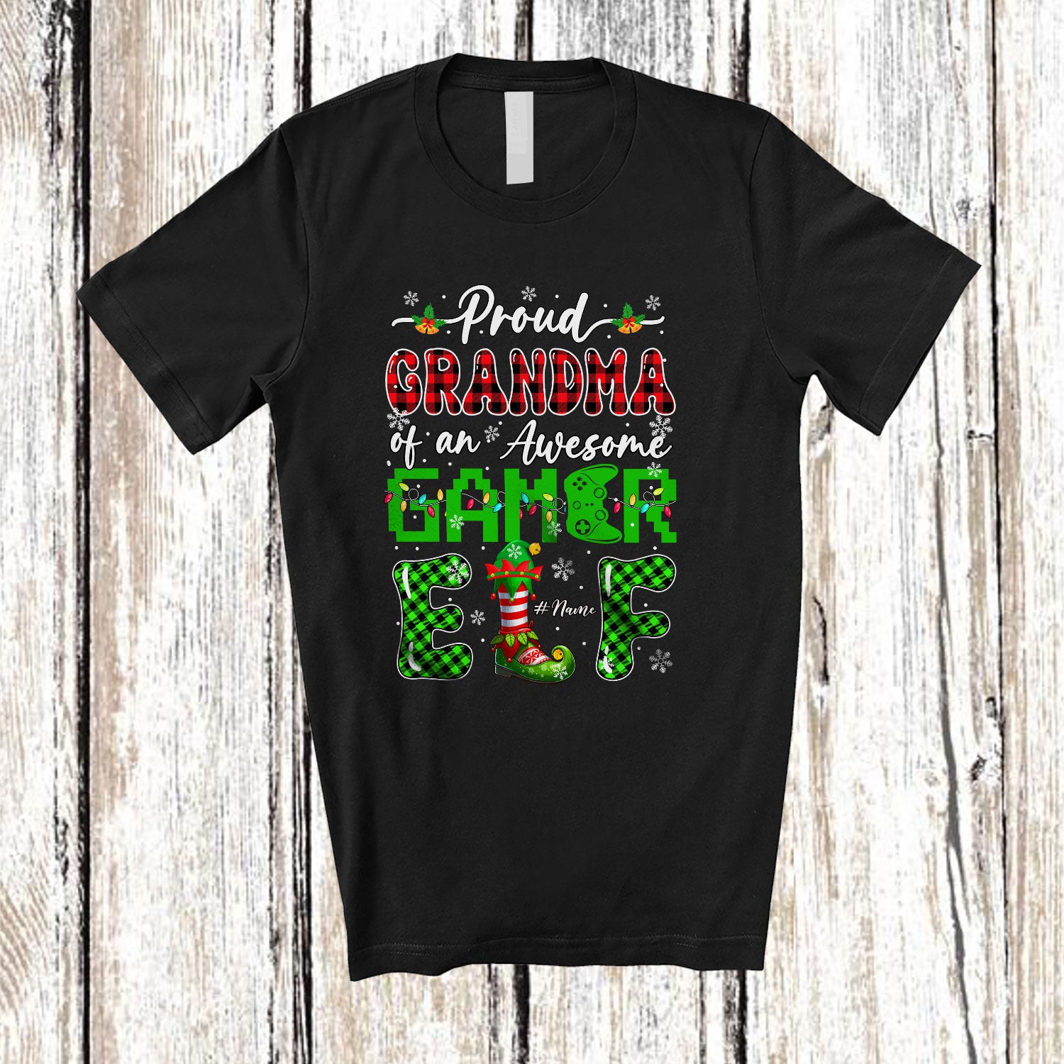 This Personalized Custom Name Grandma Of An Awesome Gamer Elf; Proud Mother's Day Christmas Plaid T-Shirt is great idea gift for your family, friends in this birthday, christmas, mother's day, father's day, patrick's day or any holiday.