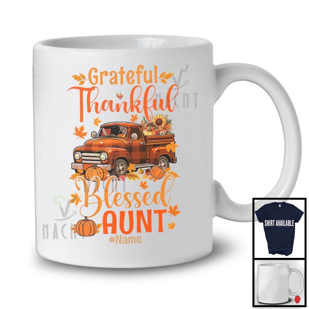 Personalized Custom Name Grateful Thankful Aunt; Lovely Thanksgiving Plaid Truck; Family T-Shirt
