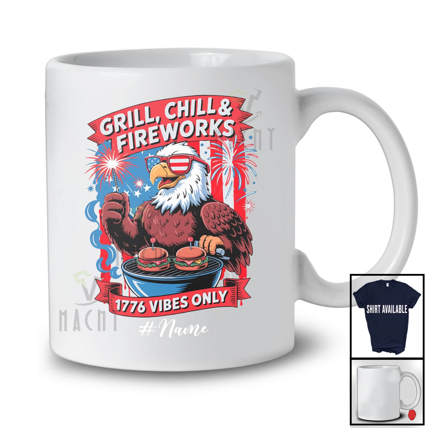 Personalized Custom Name Grill Chill 1776 Vibes Only; Proud 4th Of July BBQ Eagle; Patriotic T-Shirt