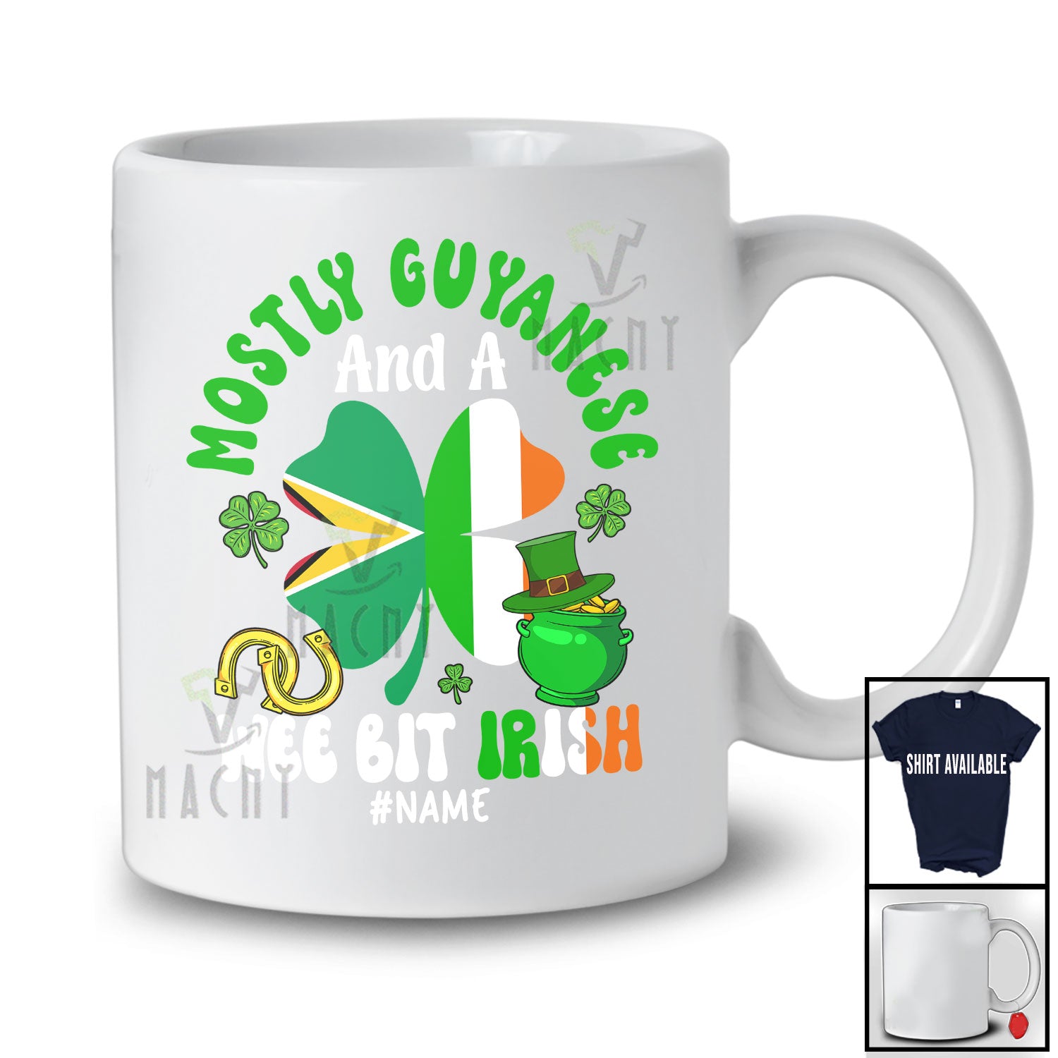 Personalized Custom Name Guyanese Wee Bit Irish; Joyful St. Patrick's Day Shamrock Flag; Family T-Shirt. This cotton t-shirt is a durable staple product with a classic fit. One of the most popular items, it has a relaxed style made for everyday and casual wear.