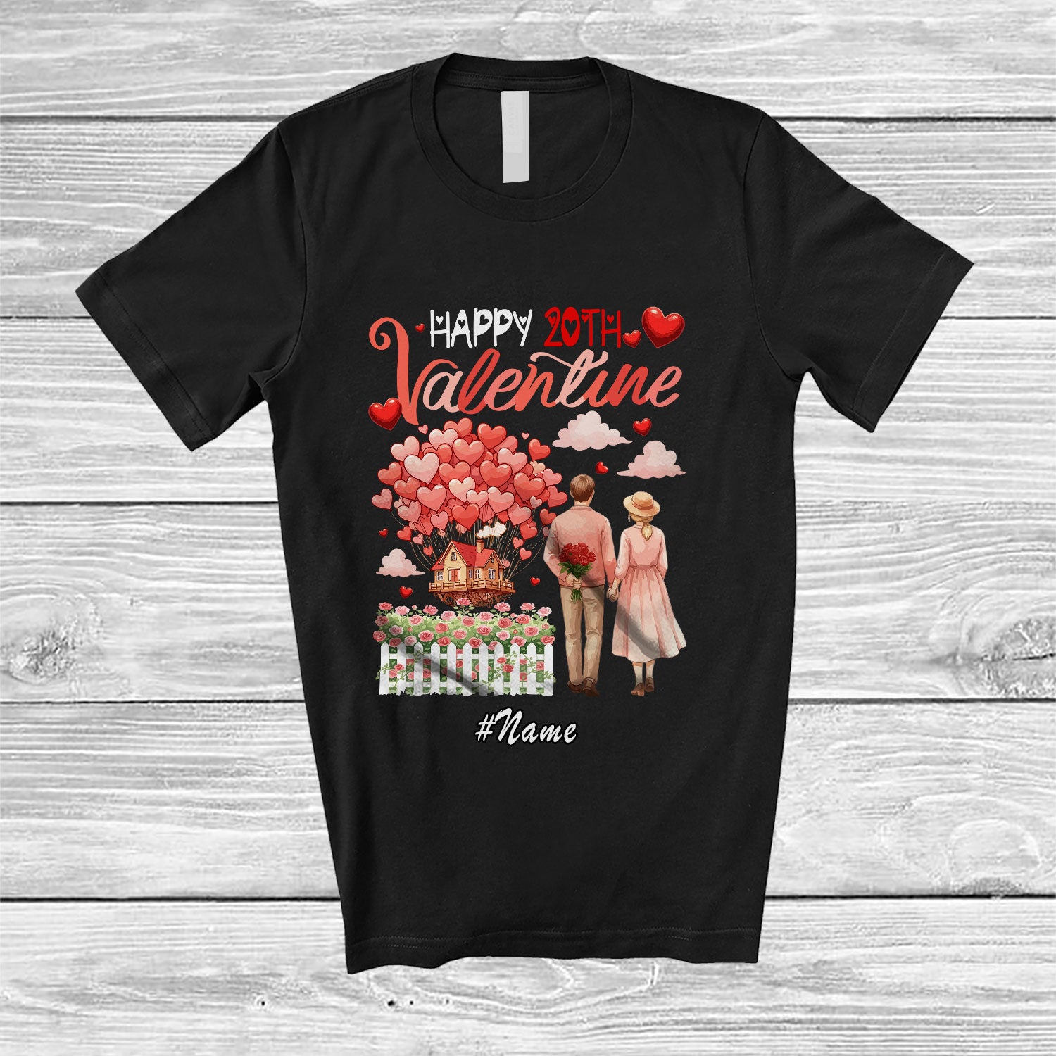 • Personalized Custom Name Happy 20th Valentine; Adorable Flowers Hearts Couple Together Family T-Shirt. This cotton t-shirt is a durable staple product with a classic fit. One of the most popular items, it has a relaxed style made for everyday and casual wear.