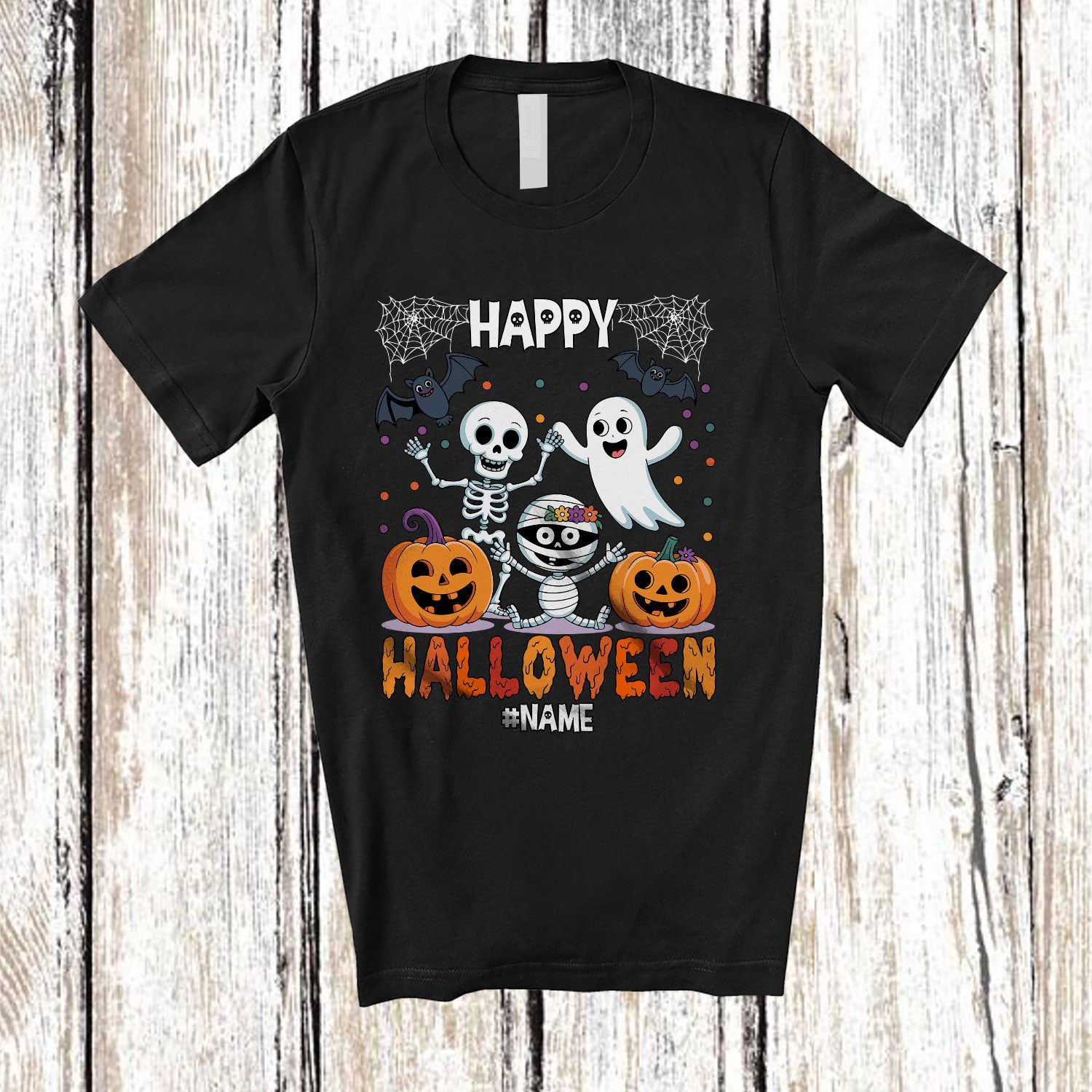 Personalized Custom Name Happy Halloween; Cheerful Collection Skeleton Pumpkin Boo Ghost T-Shirt