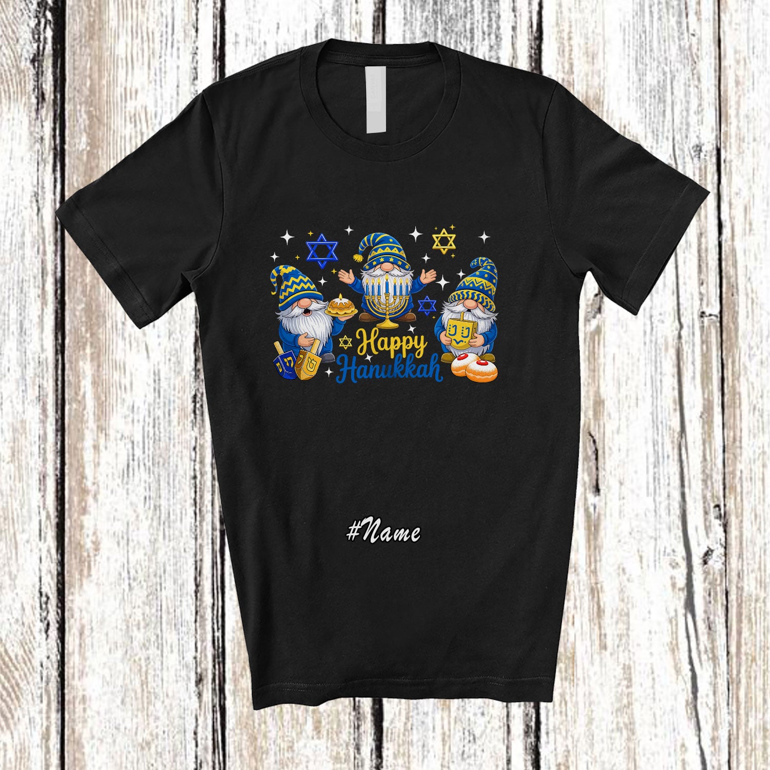 Personalized Custom Name Happy Hanukkah; Amusing Chanukah Lights Three Gnomes Gnomies T-Shirt