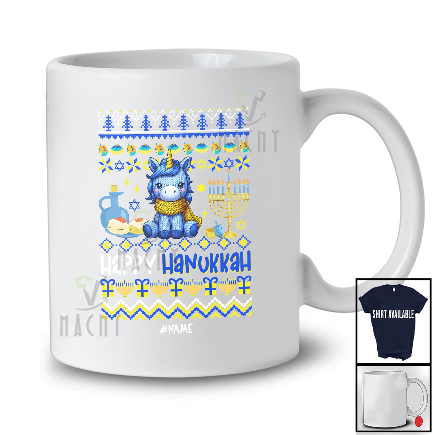 Personalized Custom Name Happy Hanukkah; Lovely Chanukah Sweater Lights Unicorn T-Shirt. This cotton t-shirt is a durable staple product with a classic fit. One of the most popular items, it has a relaxed style made for everyday and casual wear.