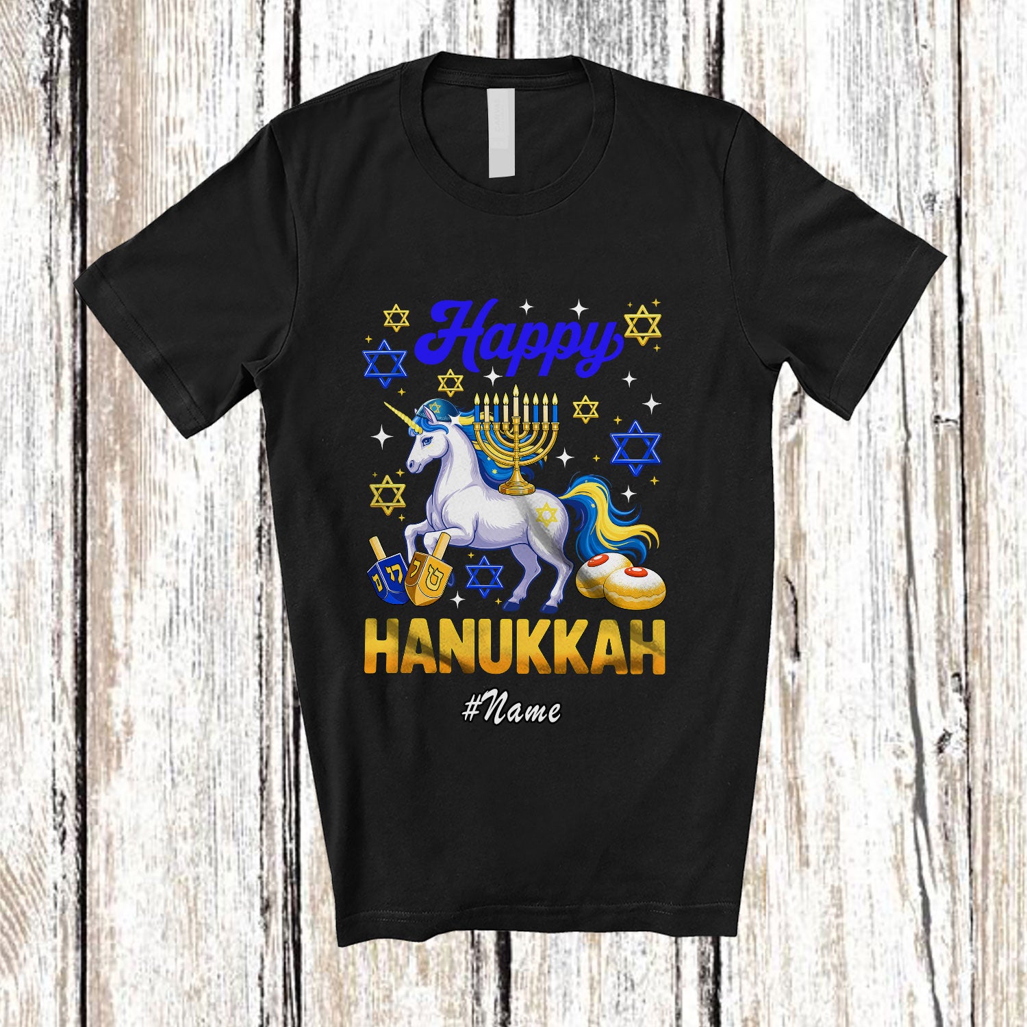 Personalized Custom Name Happy Hanukkah; Lovely Hanukkah Lights On Unicorn Lover; Family Group T-Shirt