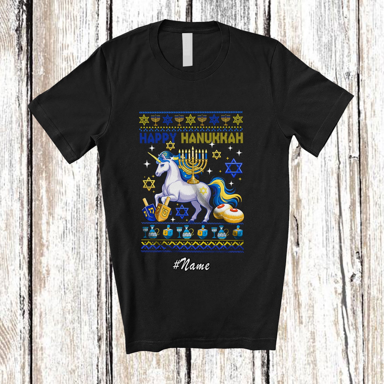 The Personalized Custom Name Happy Hanukkah; Lovely Hanukkah Sweater Lights On Unicorn; Family T-Shirt is the yin, to your yang. You've found what you're looking for.