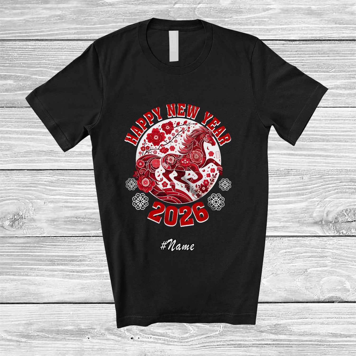Personalized Custom Name Happy New Year 2026; Floral Lunar New Year Horse Chinese Zodiac T-Shirt