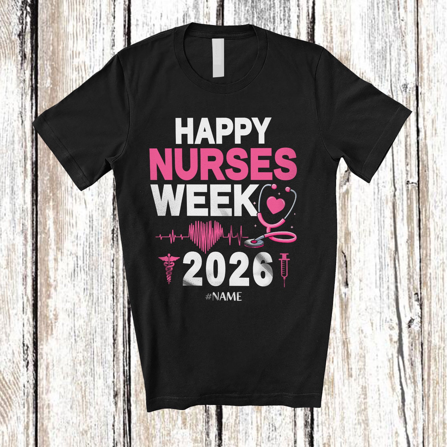 • Every product is unique, just like you. If you're looking for a product that fits the mold of your life, the Personalized Custom Name Happy Nurses Week 2026; Lovely Nurse Appreciation Week Heart T-Shirt is for you.