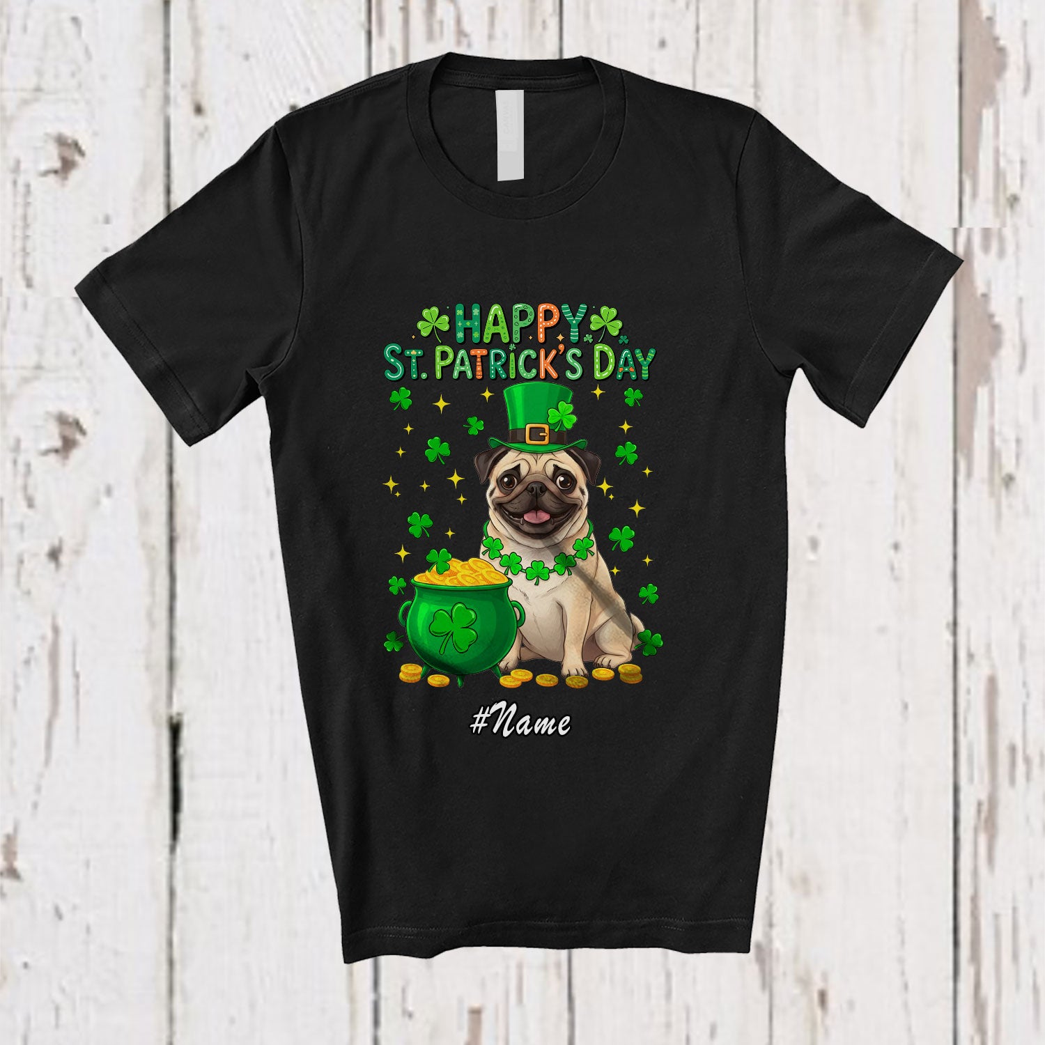 Personalized Custom Name Happy St. Patrick's Day; Adorable Irish Shamrock Pug Owner Lover T-Shirt