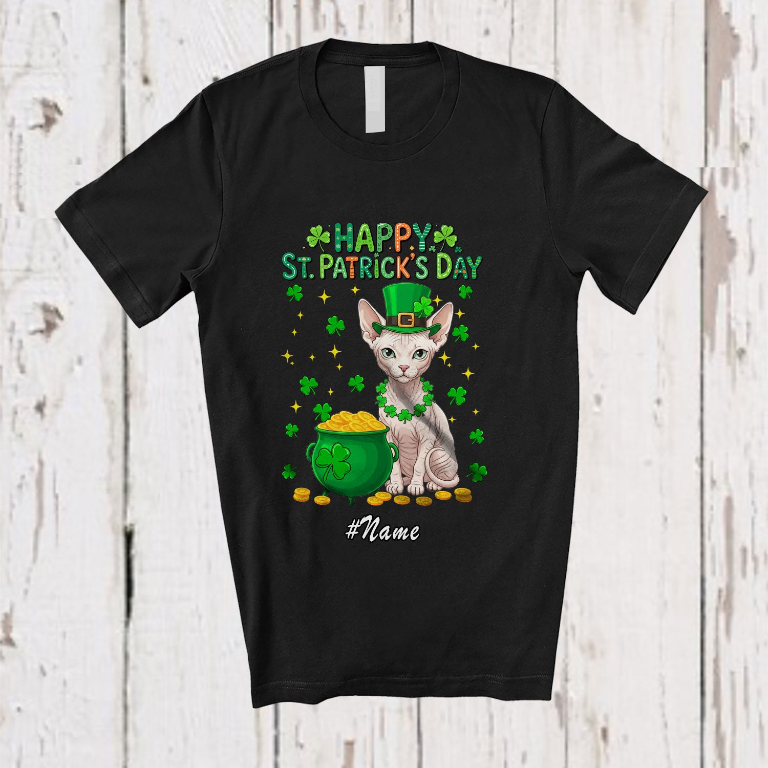 Personalized Custom Name Happy St. Patrick's Day; Adorable Irish Shamrock Sphynx Cat Owner T-Shirt