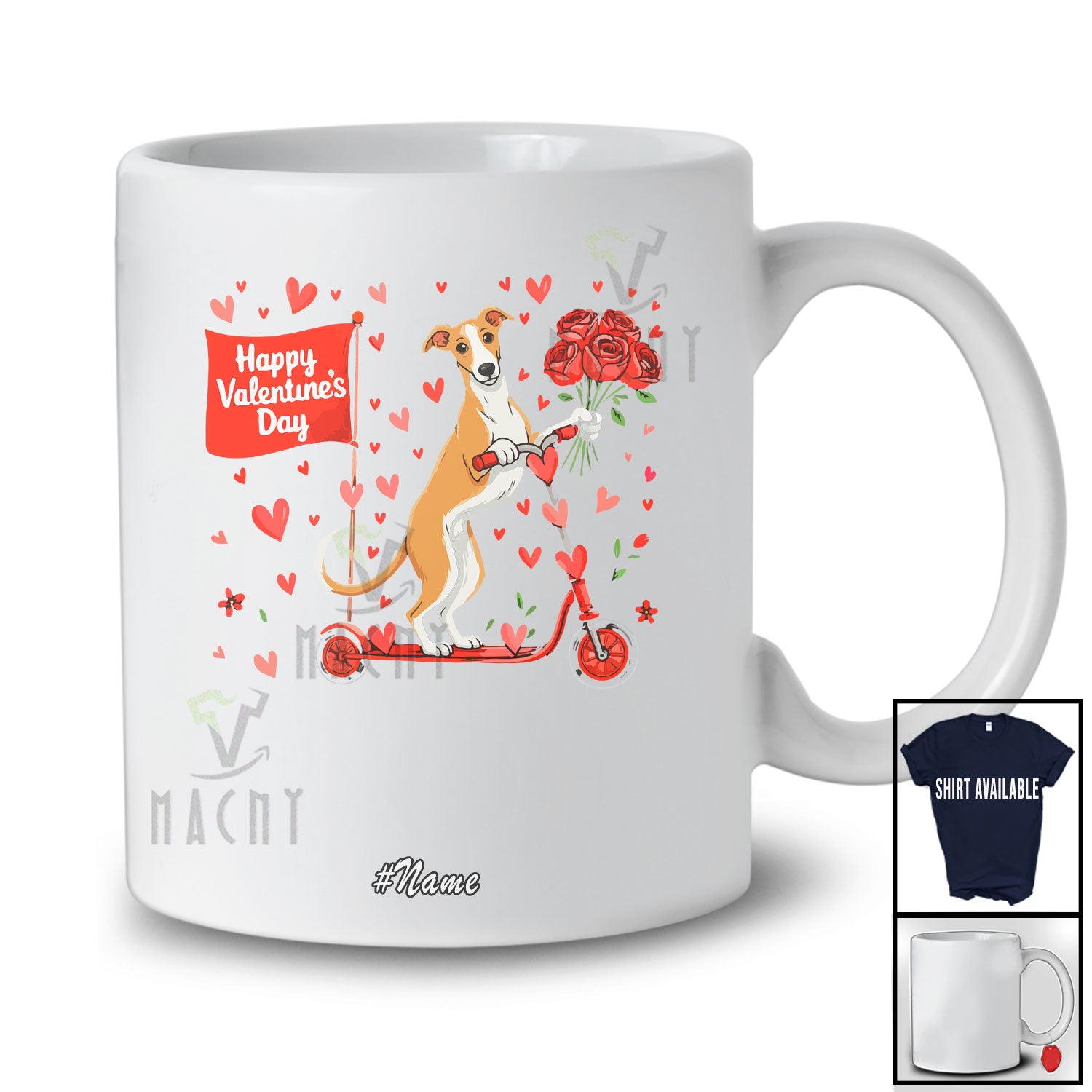 new MacnyStore - Personalized Custom Name Happy Valentine's Day; Lovely Hearts Flowers Whippet Riding Scoter T-Shirt – Macnystore