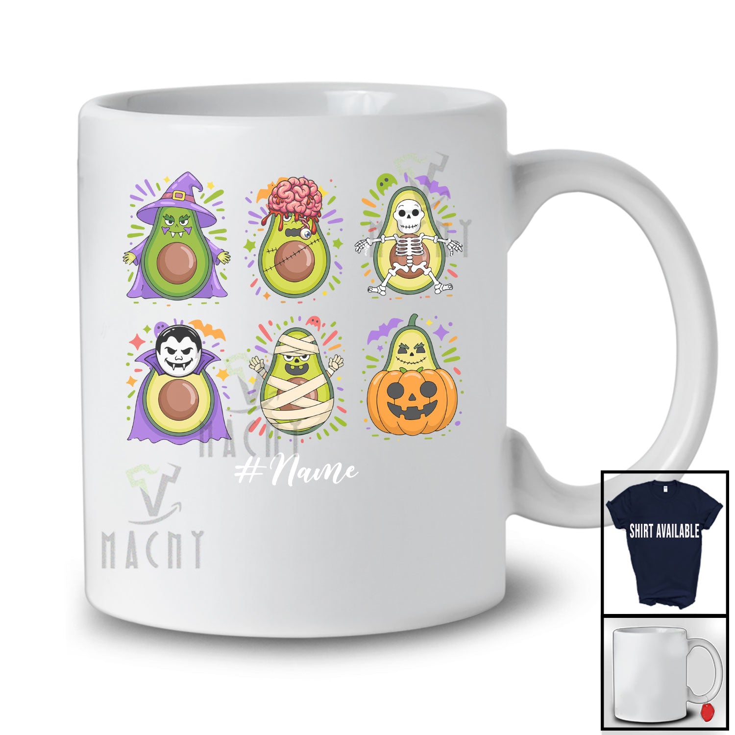 Personalized Custom Name Horror Avocado Zombie Witch Cosplay; Happy Halloween Summer Fruit T-Shirt. This cotton t-shirt is a durable staple product with a classic fit. One of the most popular items, it has a relaxed style made for everyday and casual wear.