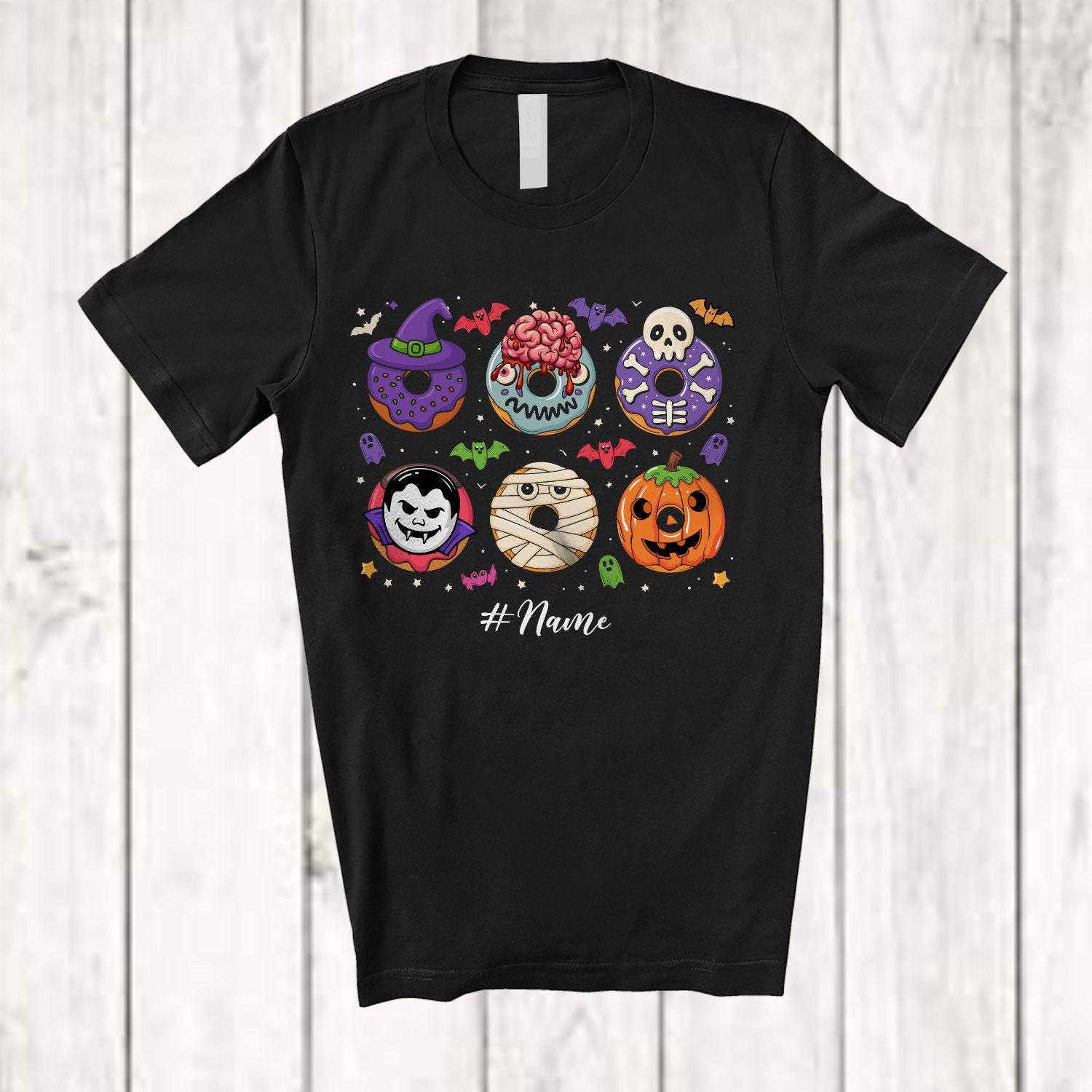 Personalized Custom Name Horror Donut Zombie Witch Cosplay; Happy Halloween Summer Food T-Shirt