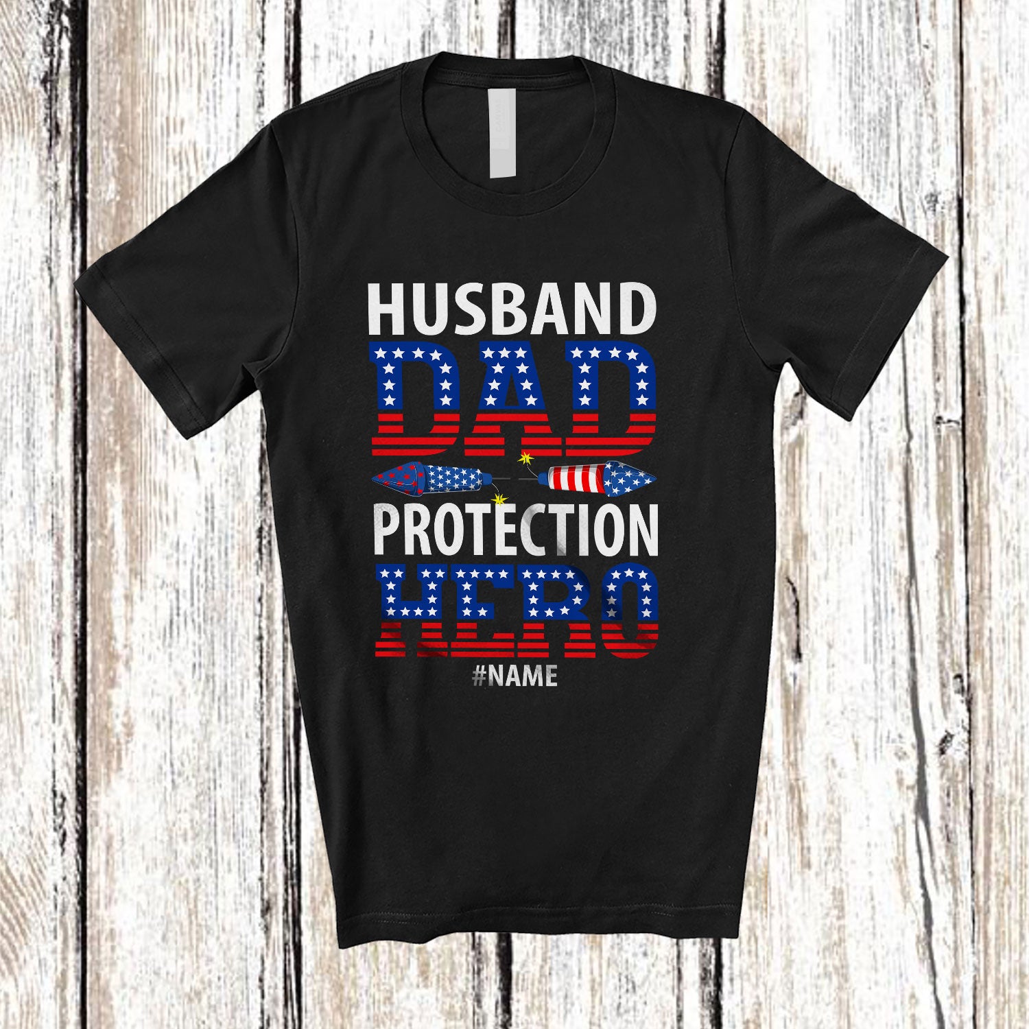 Personalized Custom Name Husband Dad Protection; Lovely Father's Day 4th of July Veteran Patriotic T-Shirt