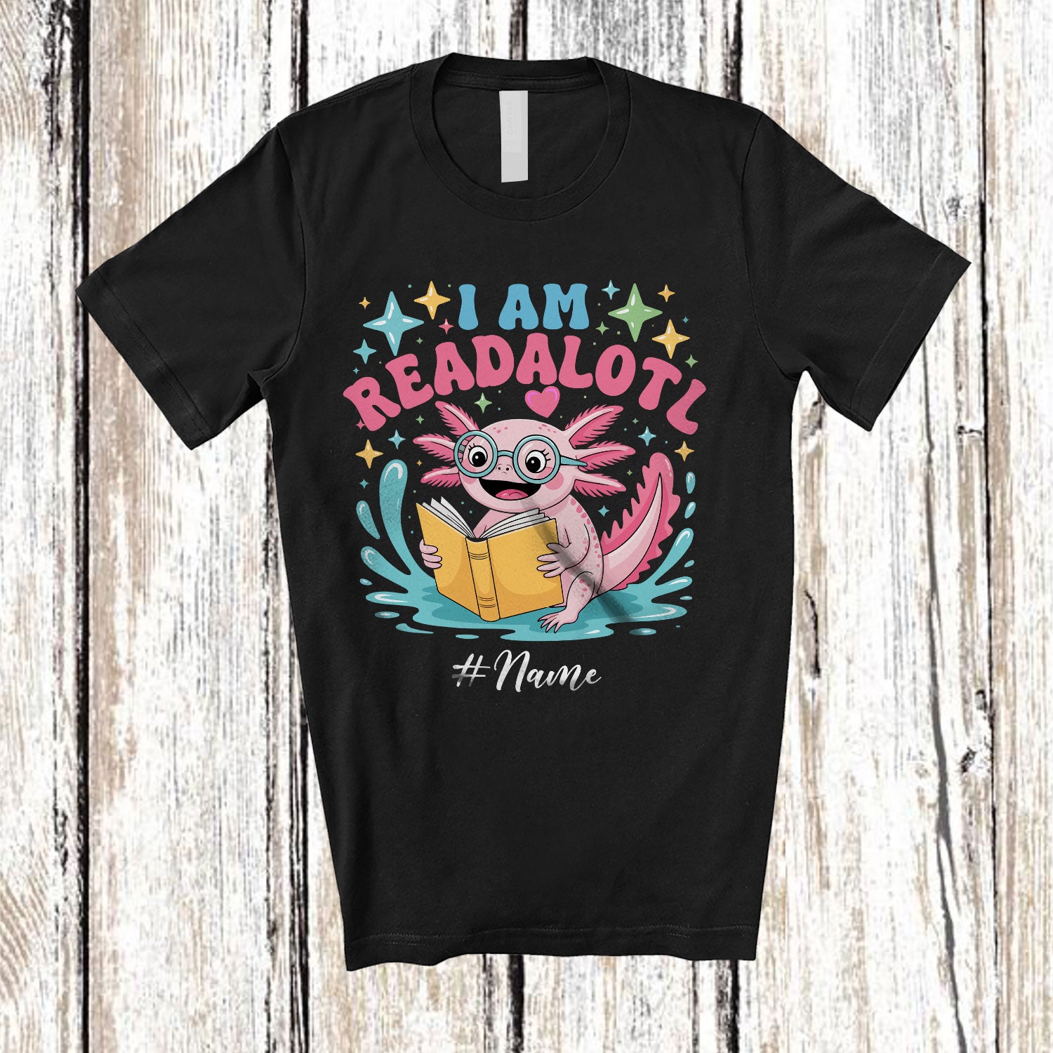 Personalized Custom Name I Am Readalotl; Adorable Axolotl Reading Book Nerd; Librarian Teacher T-Shirt