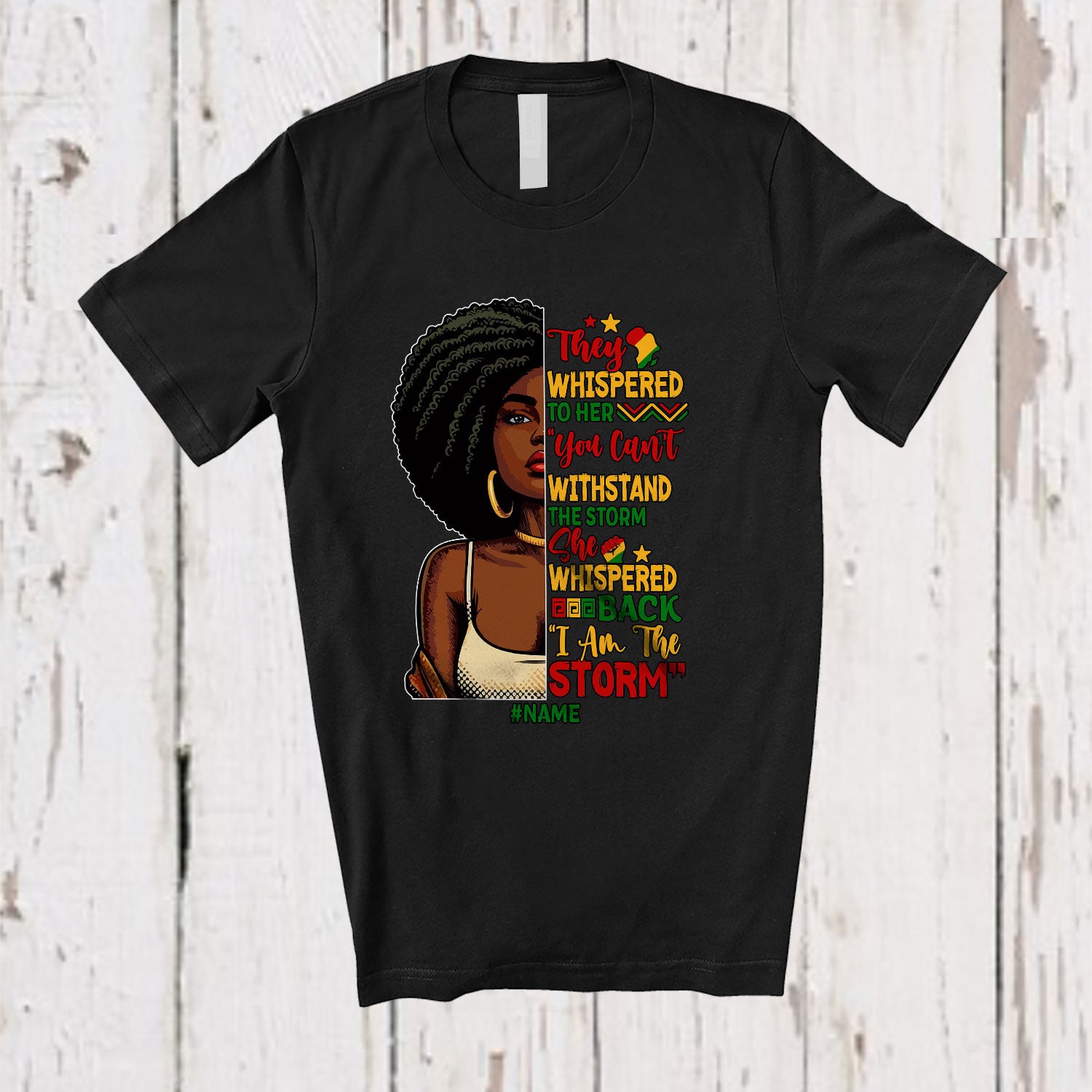The Personalized Custom Name I Am The Storm; Amusing Juneteenth Black Afro Woman Shape; African T-Shirt is the yin, to your yang. You've found what you're looking for.