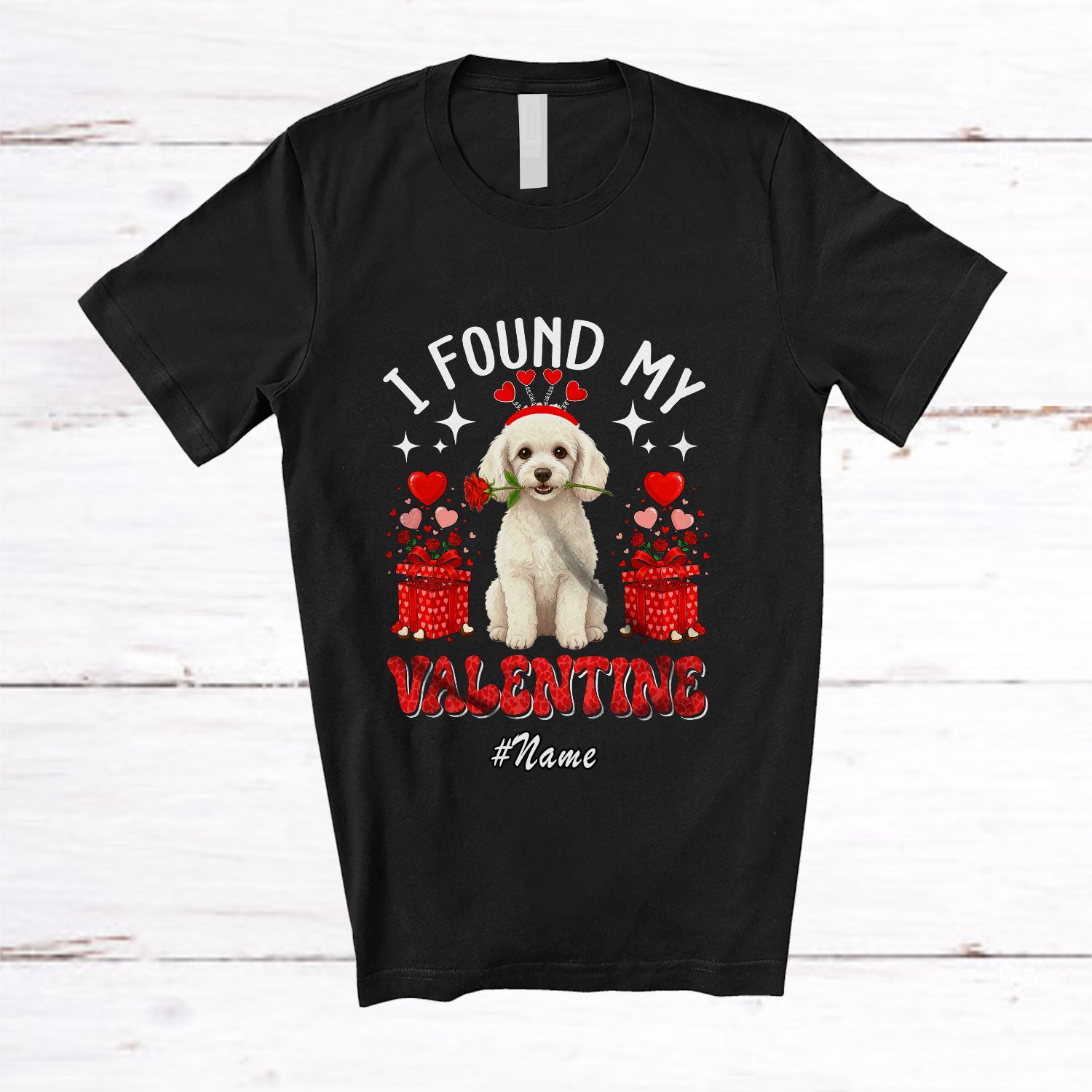 • Personalized Custom Name I Found My Valentine; Adorable Poodle Owner Lover Flower Hearts T-Shirt. This cotton t-shirt is a durable staple product with a classic fit. One of the most popular items, it has a relaxed style made for everyday and casual wear.