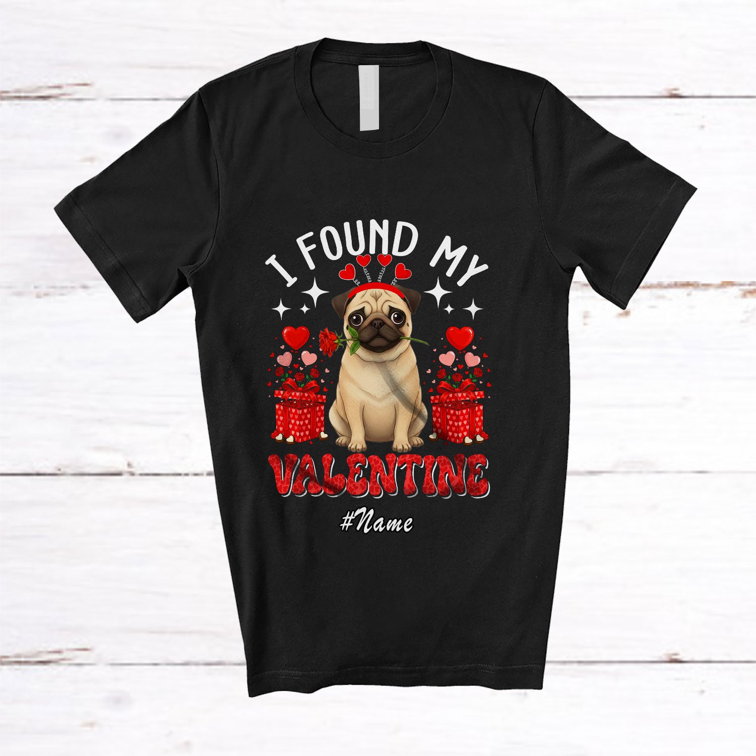 Personalized Custom Name I Found My Valentine; Adorable Pug Owner Lover Flower Hearts T-Shirt