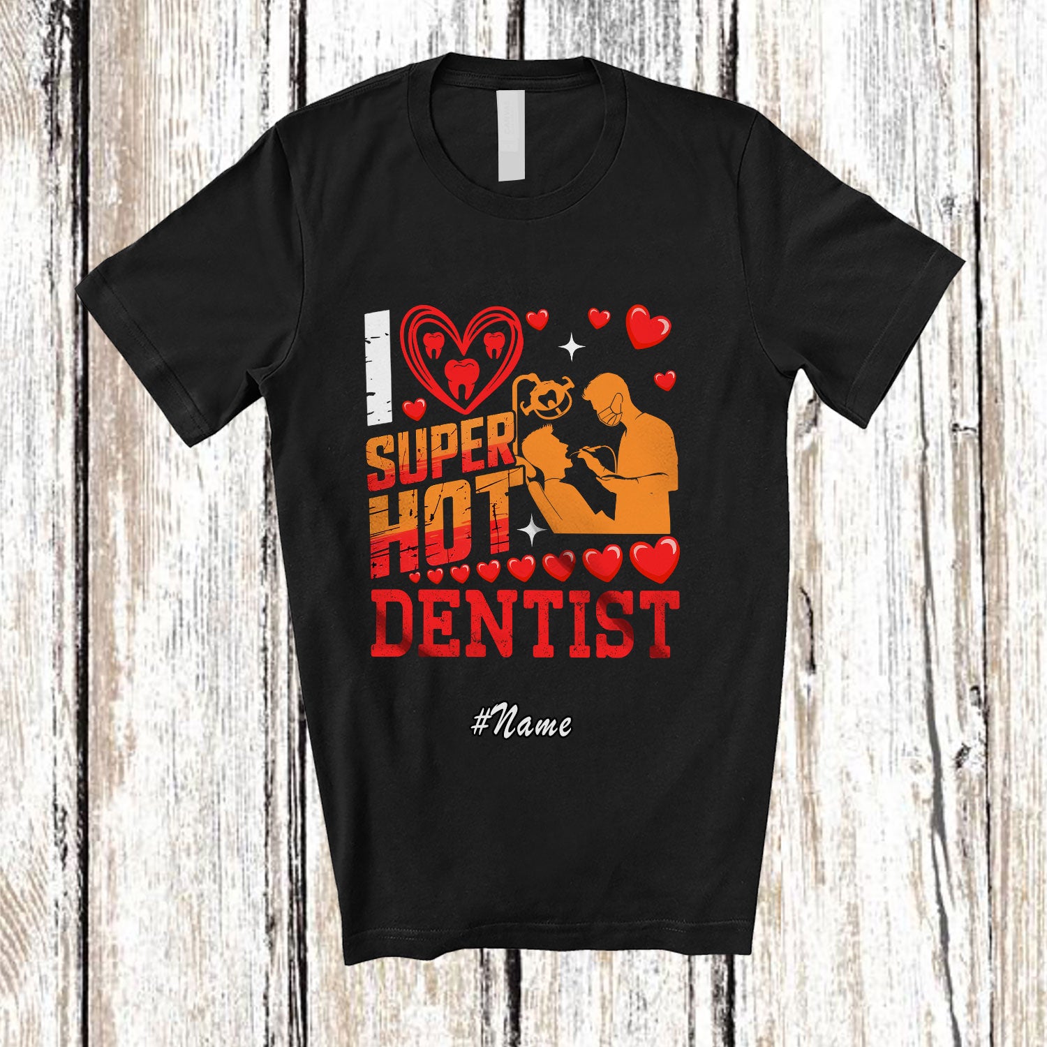 Personalized Custom Name I Love Super Hot Dentist; Awesome Valentine Hearts Couple Proud Jobs T-Shirt