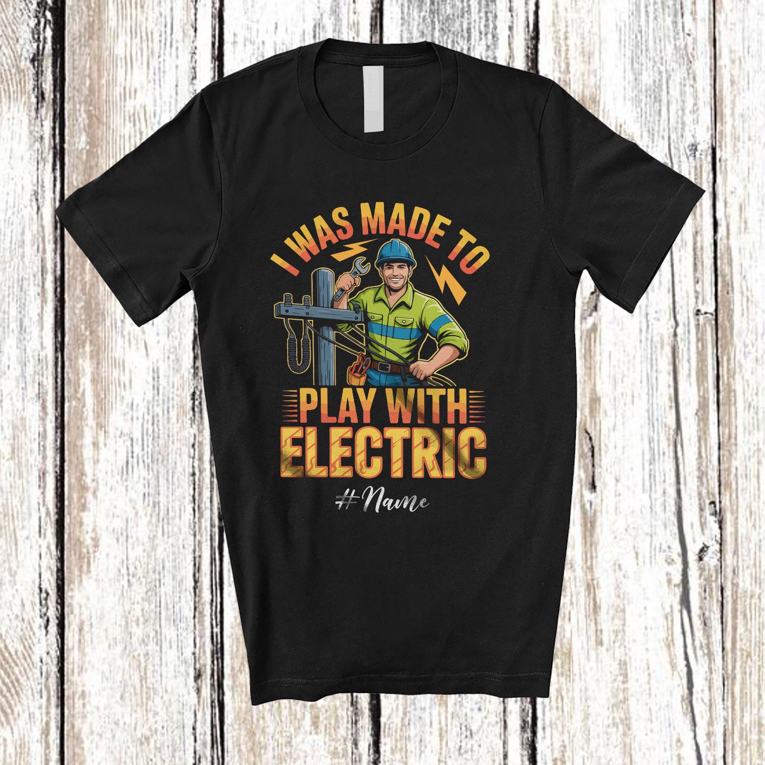 Personalized Custom Name I Was Made To Playing With Electric; Proud Electrician Family T-Shirt