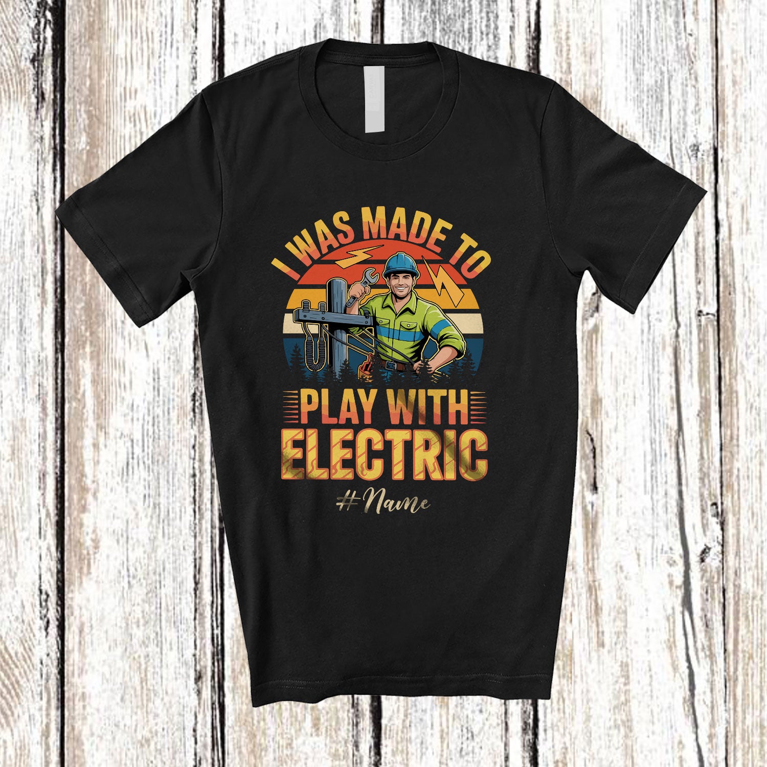 Personalized Custom Name I Was Made To Playing With Electric; Proud Electrician Vintage Retro T-Shirt