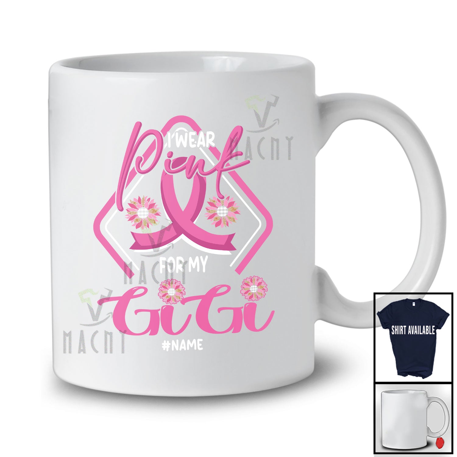 Personalized Custom Name I Wear Pink For My Gigi; Awesome Breast Cancer Sunflowers; Family T-Shirt. This cotton t-shirt is a durable staple product with a classic fit. One of the most popular items, it has a relaxed style made for everyday and casual wear.