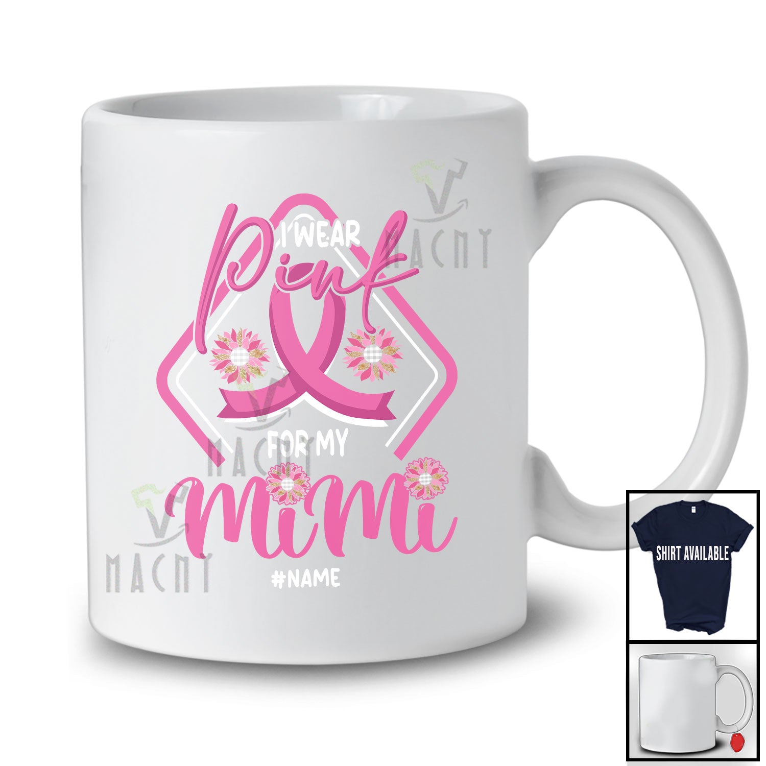 Personalized Custom Name I Wear Pink For My Mimi; Awesome Breast Cancer Sunflowers; Family T-Shirt. This cotton t-shirt is a durable staple product with a classic fit. One of the most popular items, it has a relaxed style made for everyday and casual wear.