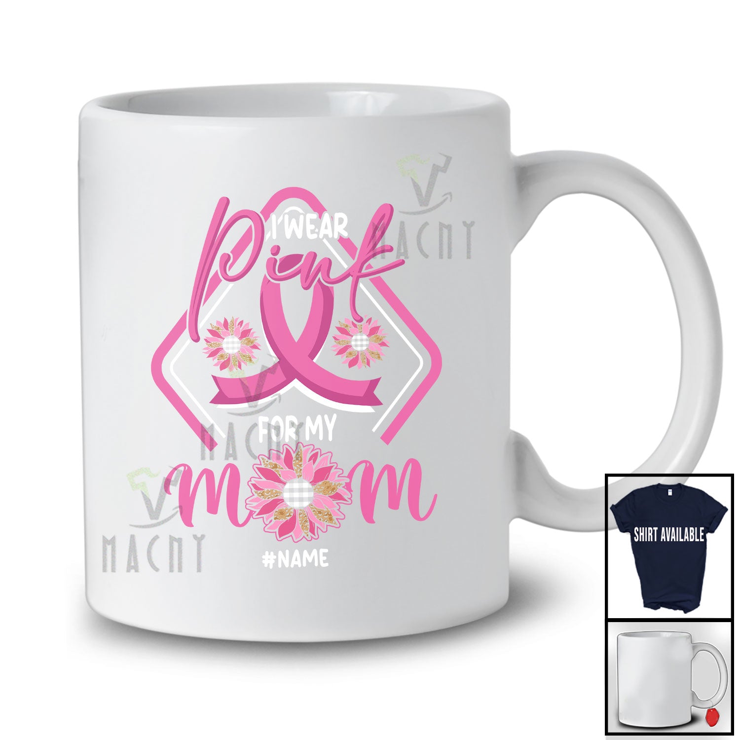 Personalized Custom Name I Wear Pink For My Mom; Awesome Breast Cancer Sunflowers; Family T-Shirt. This cotton t-shirt is a durable staple product with a classic fit. One of the most popular items, it has a relaxed style made for everyday and casual wear.