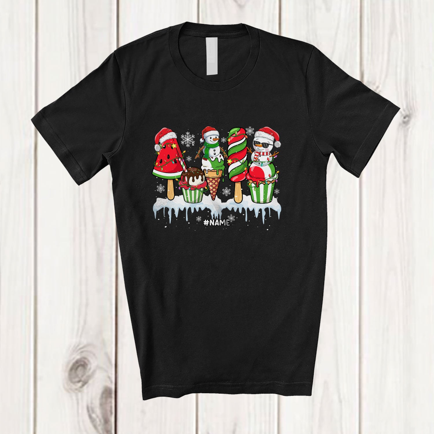 Personalized Custom Name Ice Cream Snowman Collection; Awesome Christmas Eating Lover; Family T-Shirt